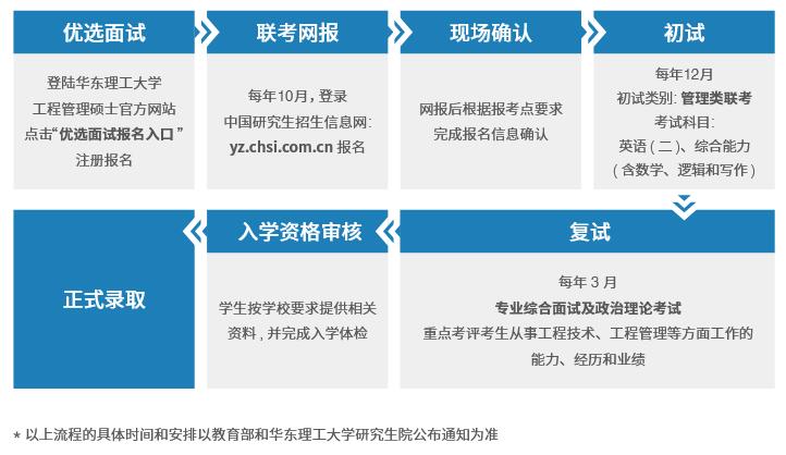 對第-志愿報考華東理工大學工程管理碩土并在優(yōu)選過程中表現(xiàn)突出的學生實行優(yōu)選加分,優(yōu)選面試報名訪問:( http://mem.ecust.edu.cn/ )具體面試時間請關注華理MEM官網(wǎng)及微信公眾號。
