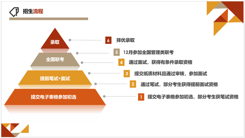 2021級MEM繼續(xù)全面實行“提前復試,聯考過國家A線擇優(yōu)錄取”的招生方式。