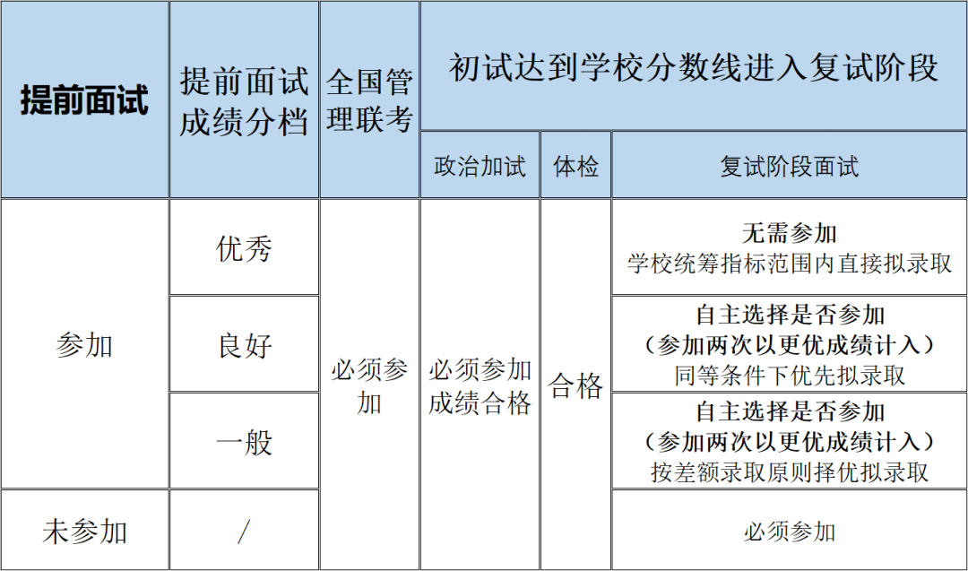 提前面試成績(jī)?cè)O(shè)“優(yōu)秀”“良好”“一般”三檔,可替代復(fù)試階段面試成績(jī)