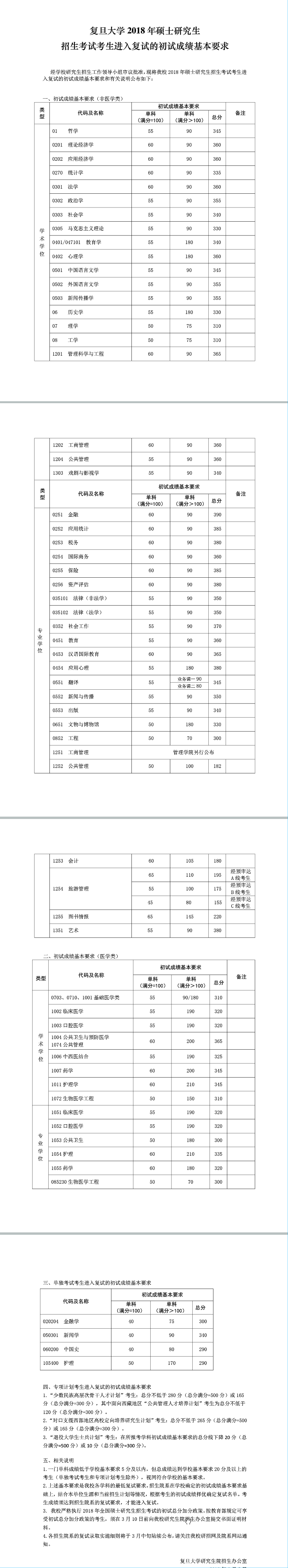 2018年復(fù)旦大學(xué)自主劃線初試成績