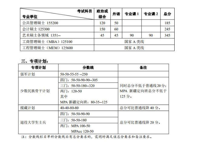 | 專項(xiàng)計(jì)劃 | 分?jǐn)?shù)線 | 備注 |
