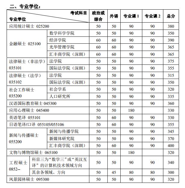 政治或綜合 | 外語 | 專業(yè)課1 | 專業(yè)課2 | 總分 | |