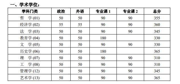 | 學(xué)科門類 | 政治 | 外語 | 專業(yè)課1 | 專業(yè)課2 | 總分 |