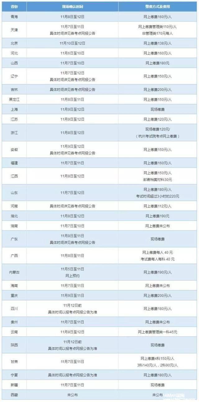 以下是各省市縣城確認(rèn)時間及繳費(fèi)金額/方式:
