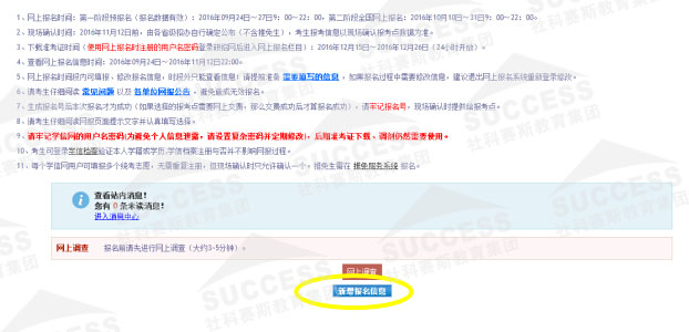3、 查看網(wǎng)上報名信息時間:2016年09月24日——2016年11月12日22:00。