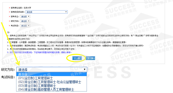 第三,“考生科目”一般為(199)管理類聯(lián)考綜合能力|(204)英語二|,若有小語種選項,請自行選擇。