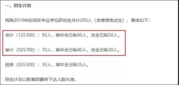 2019年全日制會(huì)計(jì)碩士計(jì)劃招生45人,學(xué)制2年,學(xué)費(fèi)3.8萬/全程;非全日制計(jì)劃招生50人,學(xué)制3年,學(xué)費(fèi)8萬元/全程;審計(jì)碩士計(jì)劃招生全日制40人,非全日制計(jì)劃招生30人,學(xué)制及學(xué)費(fèi)同上。