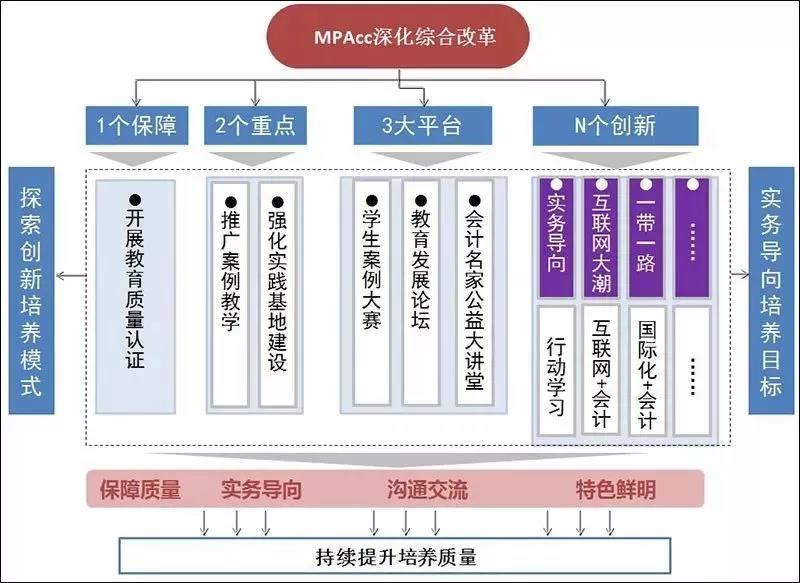 前不久,全國會計專業(yè)學位研究生教育指導委員會公布了“123+N”的MPAcc深化綜合改革試點方案。