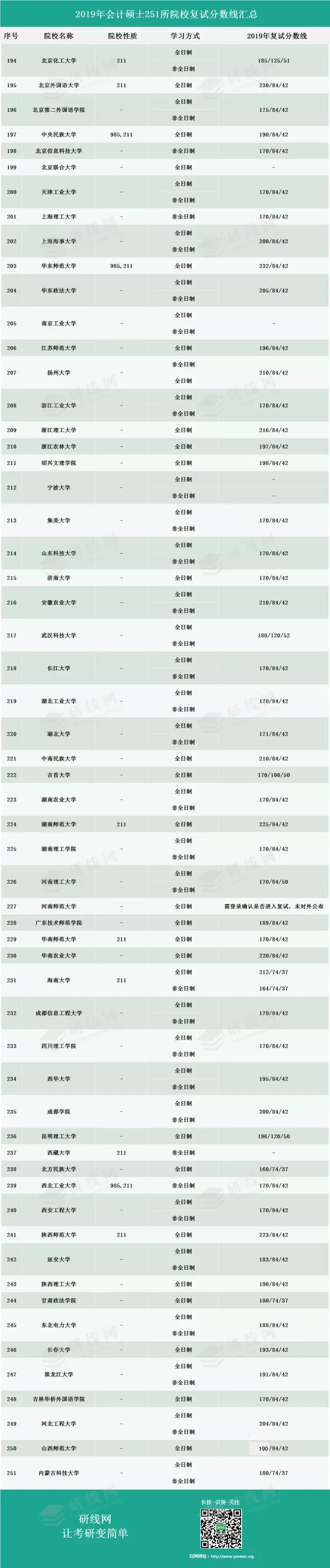 今天為大家整理了“2019年會(huì)計(jì)專碩(MPAcc)251所院校復(fù)試分?jǐn)?shù)線匯總”,希望能幫助到各位報(bào)考會(huì)計(jì)專碩的小伙伴!