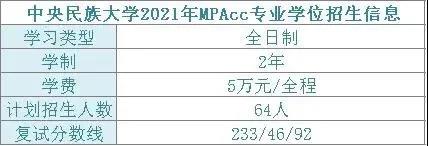 全日制 中央民族大學(xué)管理學(xué)院成立于2002年12月,以原來的政治經(jīng)濟(jì)學(xué)、政治學(xué)等學(xué)科為基礎(chǔ)組建,是一所綜合性管理學(xué)院,專業(yè)設(shè)置橫跨管理學(xué)和法學(xué)兩大學(xué)科門類,學(xué)科層次完備,擁有工商管理、公共管理、政治學(xué)三個一級學(xué)科碩士點,下設(shè)中外政治制度、科學(xué)社會主義與國際共產(chǎn)主義運動、國際關(guān)系、民族政治學(xué)、行政管理、民族地區(qū)公共行政管理、教育經(jīng)濟(jì)與管理、社會保障、企業(yè)管理、技術(shù)經(jīng)濟(jì)與管理、會計學(xué)、旅游管理十二個碩士學(xué)位點,還有公共管理專業(yè)碩士(MPA)和工商管理碩士(MBA)學(xué)位授予權(quán);設(shè)有民族政治學(xué)、民族地區(qū)行政管理、工業(yè)社會管理三個專業(yè)博士學(xué)位點。 在學(xué)科建設(shè)與人才培養(yǎng)方面突出效率、公平兩大目標(biāo)。 2021年MPAcc專業(yè)招生信息 中央民族大學(xué)2021年招收全日制考生64人,學(xué)制2年,復(fù)試基本分?jǐn)?shù)線為233/46/92。 2021年MPAcc專業(yè)錄取情況 中央民族大學(xué)2021年MPAcc專業(yè)一志愿進(jìn)入復(fù)試全日制考生98人,擬錄取75人; 在錄取考生中,居于240-249分的考生占比最大。 2021年MPAcc專業(yè)一志愿擬錄取名單 全日制復(fù)試98人,最高分255分,最低分233分; 擬錄取最高分255分,最低分234分; 士兵計劃擬錄取兩名,分?jǐn)?shù)分別為220、173分 報考指南復(fù)試形式:線上復(fù)試復(fù)試內(nèi)容: (1)綜合面試(含專業(yè)考核、外國語聽說能力測試)。 (2)管理類聯(lián)考考生(MBA、MPA等)需按學(xué)院要求進(jìn)行思想政治理論考核。 (3)同等學(xué)力考生需加試兩門本科階段主干課程(筆試),可采取在線監(jiān)考方式進(jìn)行。 (4)在復(fù)試考核中應(yīng)加強對考生思想品德的考核。