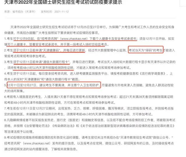 12月11日前,申請“天津健康碼”,保證考試當天是“綠碼”