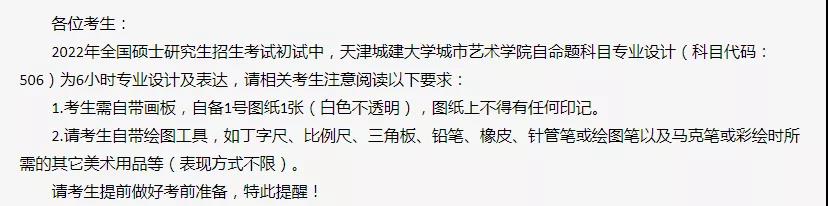 天津城建大學城市藝術學院發(fā)布了《關于2022年碩士研究生招生考試初試自命題科目專業(yè)設計(506)自帶繪圖工具的說明》。