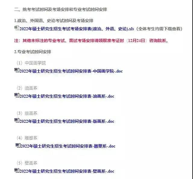 中央美術(shù)學(xué)院公布了2022年碩士研究生統(tǒng)考考試時(shí)間及考場(chǎng)安排和專業(yè)考試時(shí)間安排,每個(gè)學(xué)院都有提到,很細(xì)致認(rèn)真了!