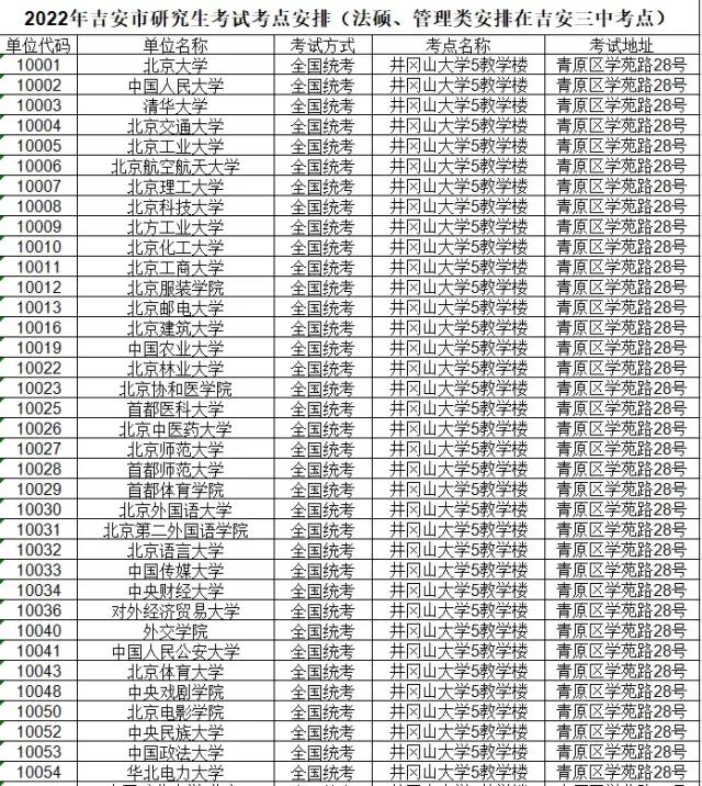 吉安22考點(diǎn)在吉安二中、吉安三中、井岡山大學(xué),其中井岡山大學(xué)考點(diǎn)安排在5、9、10、11這四棟教學(xué)樓。