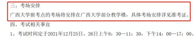 廣西大學(xué)報(bào)考點(diǎn)的考場(chǎng)將安排在廣西大學(xué)部分教學(xué)樓,具體考場(chǎng)安排詳見準(zhǔn)考證。請(qǐng)報(bào)考點(diǎn)為廣西大學(xué)的同學(xué)在后期及時(shí)關(guān)注準(zhǔn)考證信息。