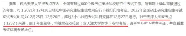 天津大學(xué)報(bào)考點(diǎn)(1232)來講,由于考生較多,將繼續(xù)在雙校區(qū)(含天津大學(xué)附小)安排考場(chǎng)。