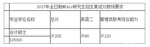 在教育部公布的《2017年全國(guó)碩士研究生招生考試考生進(jìn)入復(fù)試的初試成績(jī)基本要求》的基礎(chǔ)上,廈門國(guó)家會(huì)計(jì)學(xué)院根據(jù)2017年會(huì)計(jì)專業(yè)碩士研究生(MPAcc)招生計(jì)劃數(shù),采取1:1.5差額復(fù)試,確定復(fù)試分?jǐn)?shù)線如下(見下面表格)。廈門國(guó)家會(huì)計(jì)學(xué)院2017年全日制MPAcc研究生招生計(jì)劃為80人(含1名推免生),非全日制MPAcc研究生招生計(jì)劃為30人。