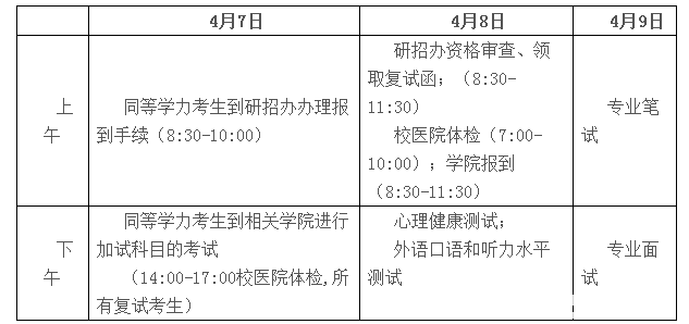 所有參加復(fù)試考生均需筆試科目一門(詳見招生目錄),同時參加外語聽力口語測試及專業(yè)面試。同等學(xué)力考生(大專畢業(yè)生、本科結(jié)業(yè)生)需加試本科段兩門主干課。同等學(xué)力考生須4月7日 辦理報到手續(xù),并到相關(guān)學(xué)院進行加試科目的考核。不按時報到參加加試的,取消復(fù)試資格。法律(非法學(xué))專業(yè)同等學(xué)力考生無須加試。