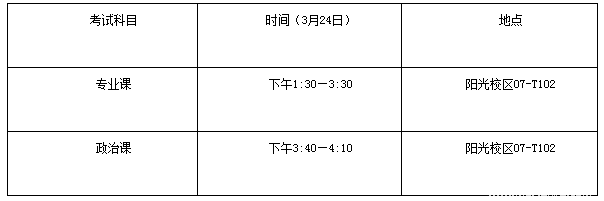 考生于3月25日上午8:00憑身份證原件及初試準考證到陽光校區(qū)七號樓402室參加綜合面試。