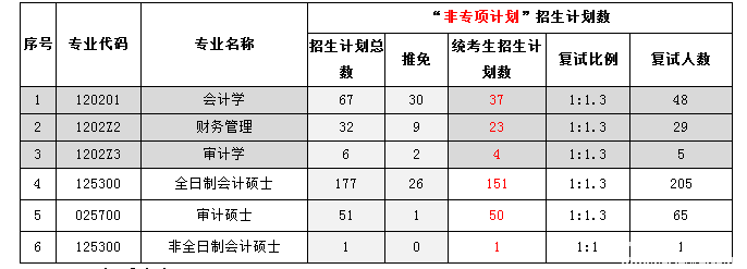 會計學(xué)院(會碩中心)2017年碩士研究生招生計劃明細(xì)表(不含專項計劃)