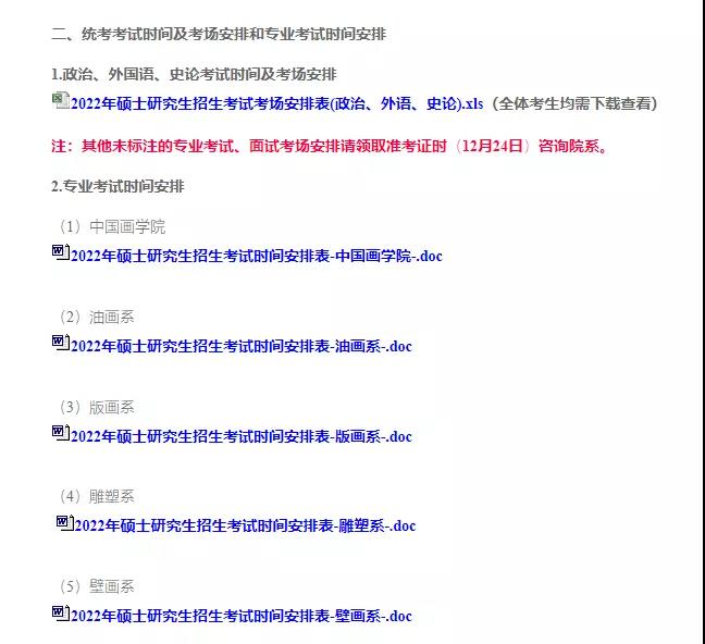 中央美術學院公布了2022年碩士研究生統(tǒng)考考試時間及考場安排和專業(yè)考試時間安排,細致到每一個學院。