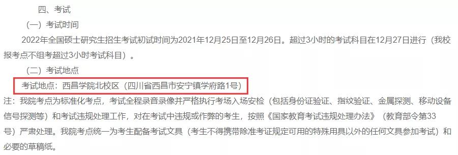 考試地點:西昌學院北校區(qū)(四川省西昌市安寧鎮(zhèn)學府路1號)