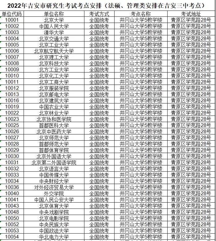 吉安22考點在吉安二中、吉安三中、井岡山大學,其中井岡山大學考點安排在5、9、10、11這四棟教學樓。