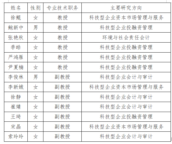 科技型企業(yè)資本市場(chǎng)管理與服務(wù)培養(yǎng)目標(biāo):創(chuàng)業(yè)板、新三板、科創(chuàng)板企業(yè)上市問(wèn)題研究、風(fēng)險(xiǎn)投資和基金管理研究、資本市場(chǎng)會(huì)計(jì)研究等。