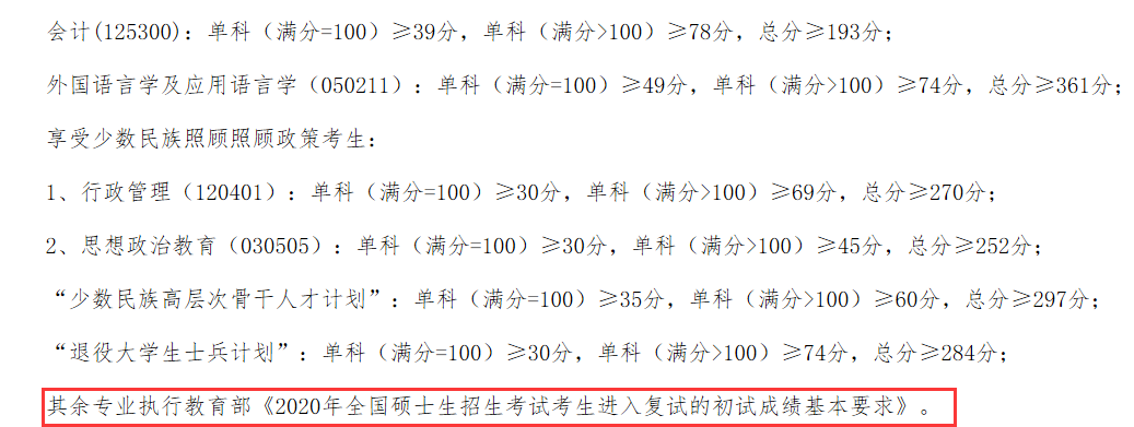 云南民族大學(xué)2020年MPA復(fù)試基本分?jǐn)?shù)線:165/78/39