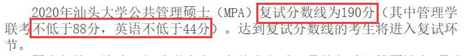 汕頭大學2020年MPA復試基本分數(shù)線:190/88/44