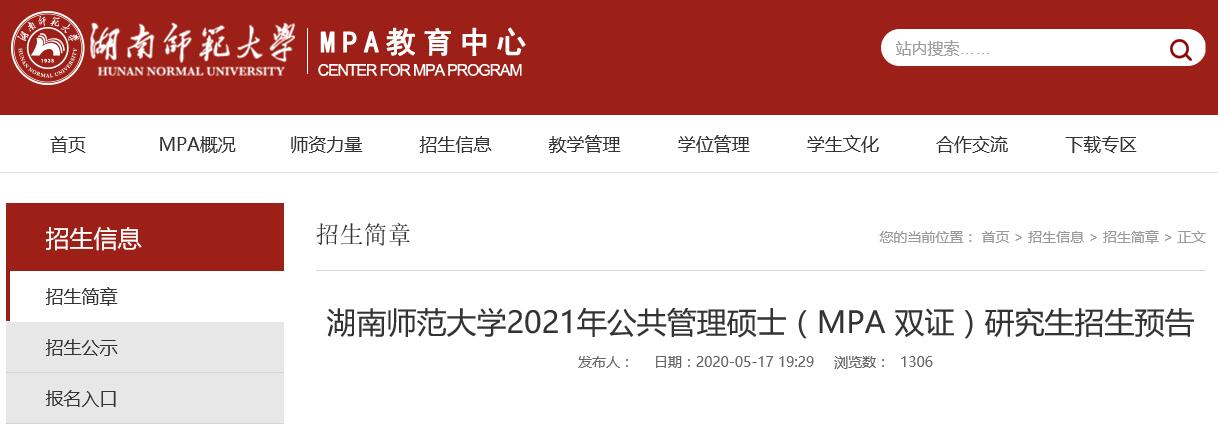 (說明:此宣傳材料是依據(jù)2020年學(xué)校招生簡章制作,僅供2021年考生報(bào)名參考。具體以湖南師范大學(xué)2021年碩士研究生招生簡章為準(zhǔn)。預(yù)計(jì)在2020年9月份公布,屆時(shí)敬請(qǐng)關(guān)注“湖南師范大學(xué)研究生院”、“湖南師范大學(xué)MPA教育中心”官方網(wǎng)站。致謝?。?/div>