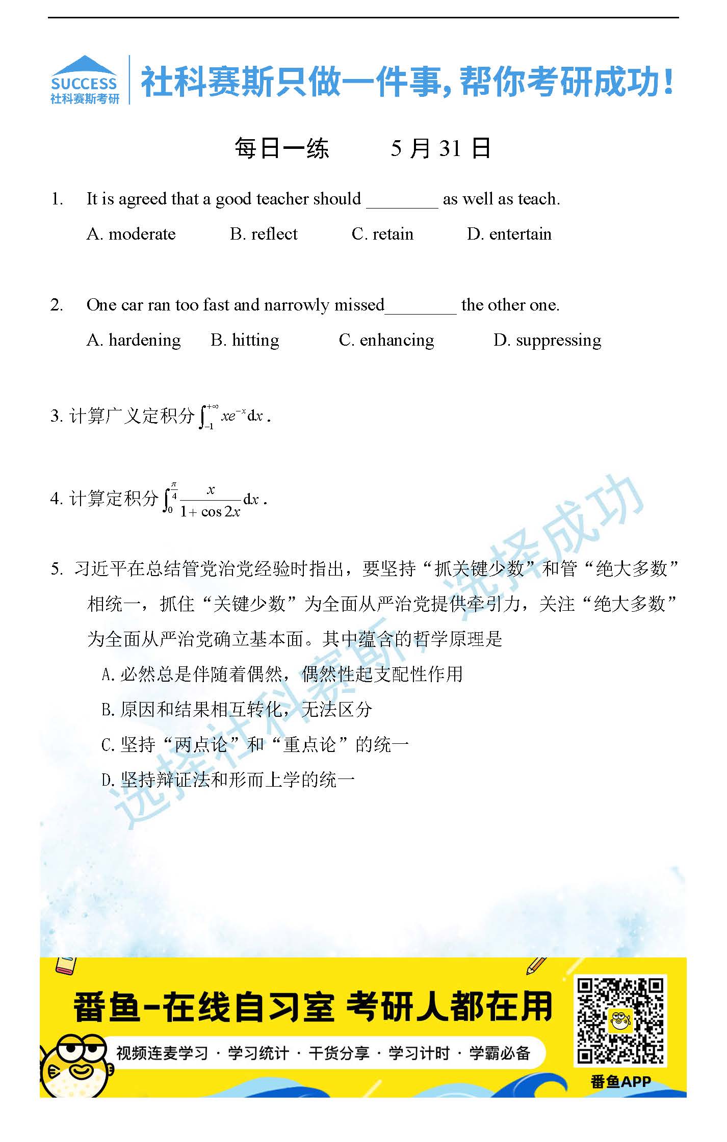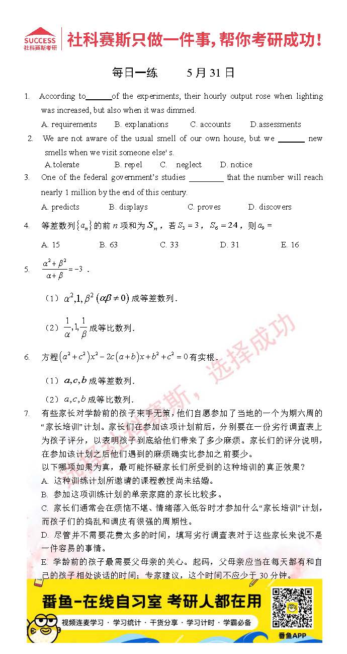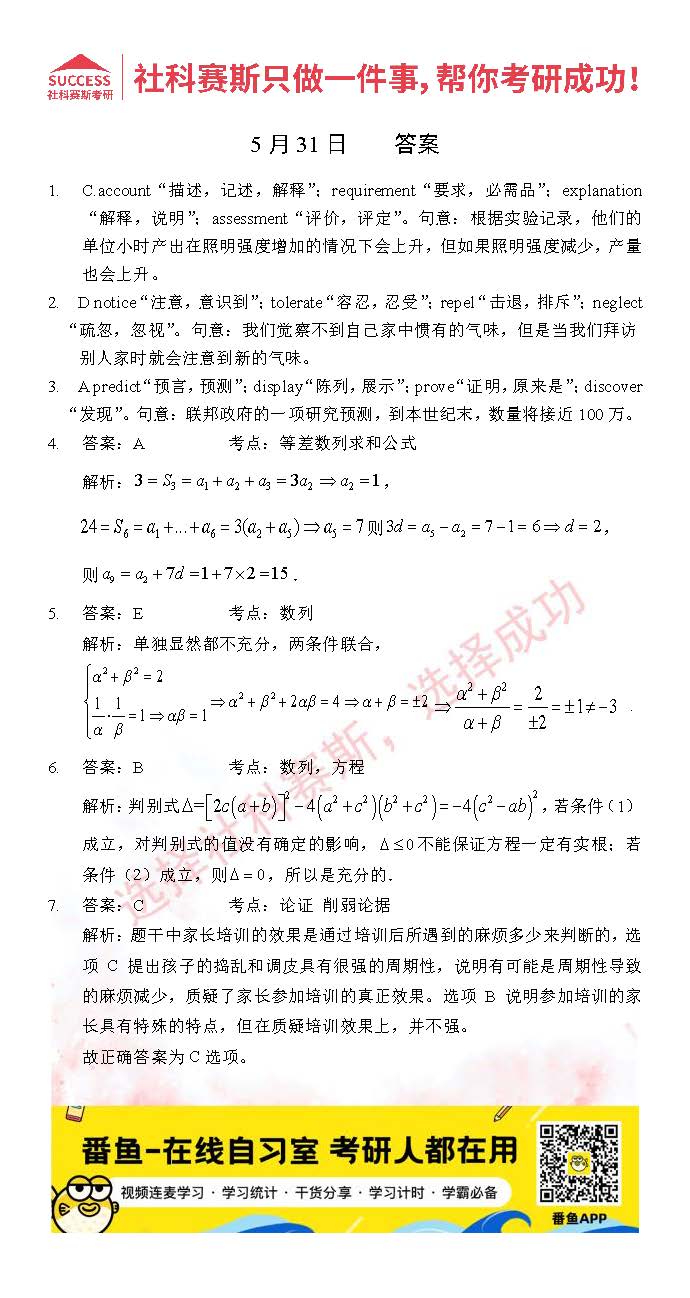的全部內(nèi)容,希望各位考生堅(jiān)持利用起來,更多每日一練內(nèi)容請持續(xù)關(guān)注MBA備考網(wǎng)管理類聯(lián)考每日一練。