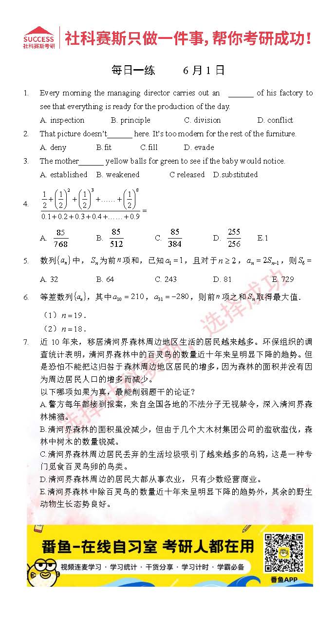 首頁> 管理類聯(lián)考每日一練 > 2022管理類聯(lián)考6月1日每日一練及答案