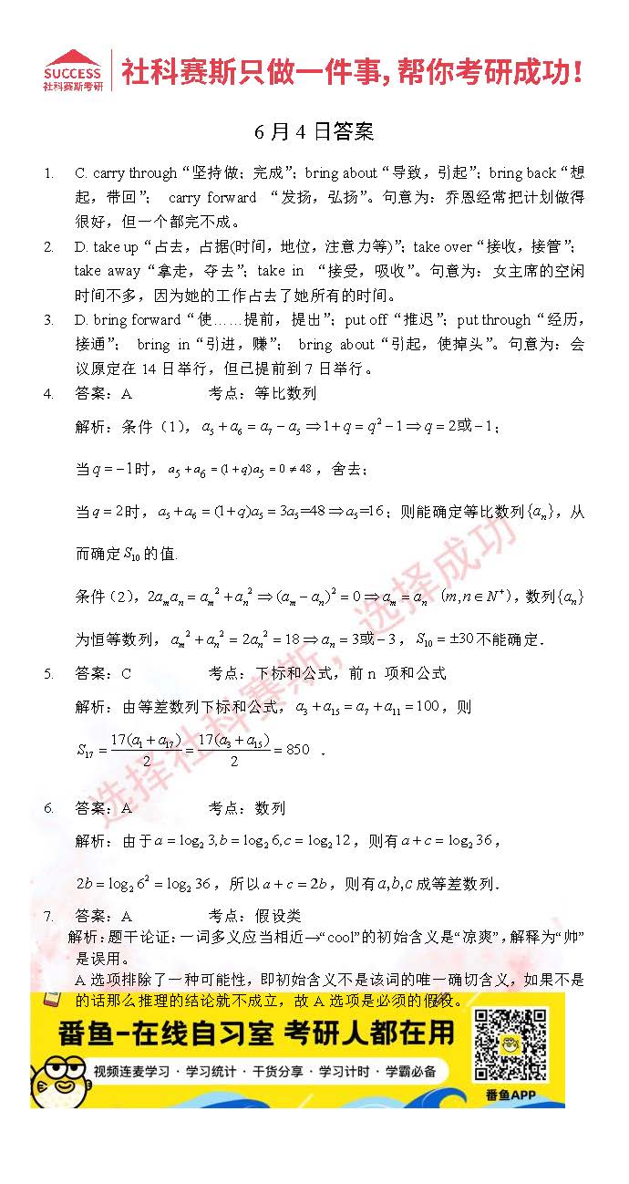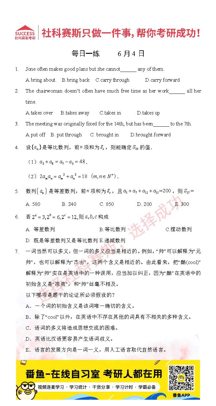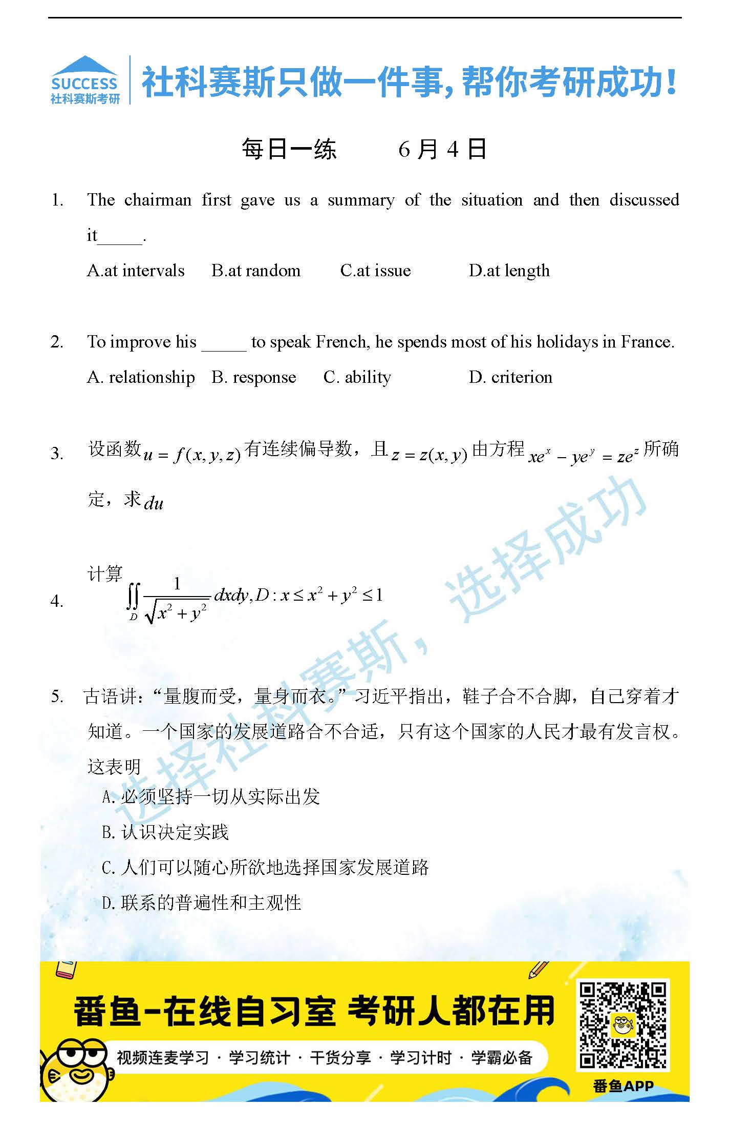 導(dǎo)讀:考研是一場(chǎng)持久戰(zhàn),保持良好的學(xué)習(xí)習(xí)慣,是能確保復(fù)習(xí)高效的關(guān)鍵。今天社科賽斯MBA備考網(wǎng)小編整理了“2022管理類聯(lián)考6月4日每日一練及答案”的內(nèi)容,希望能對(duì)廣大考生有所幫助。