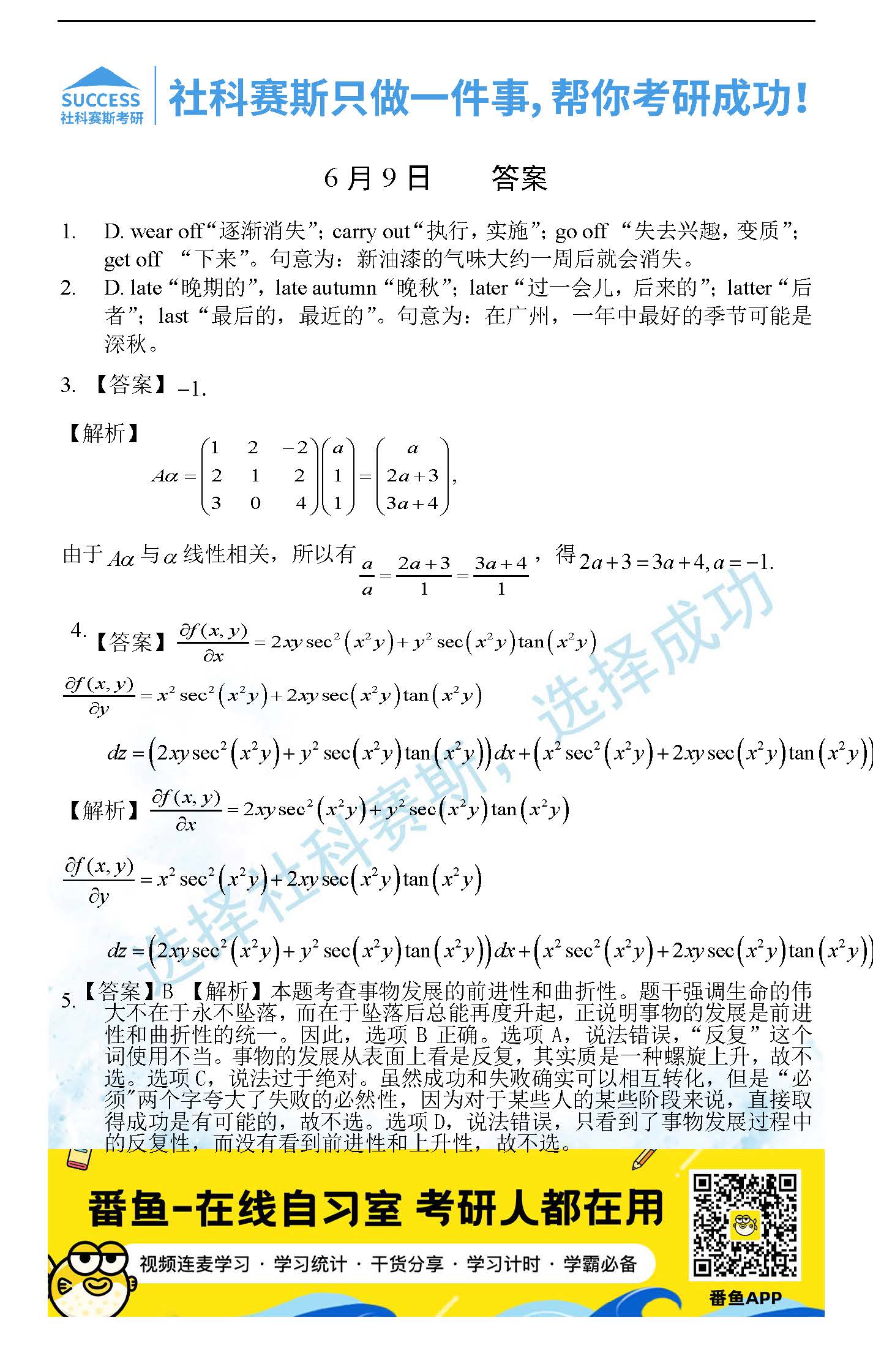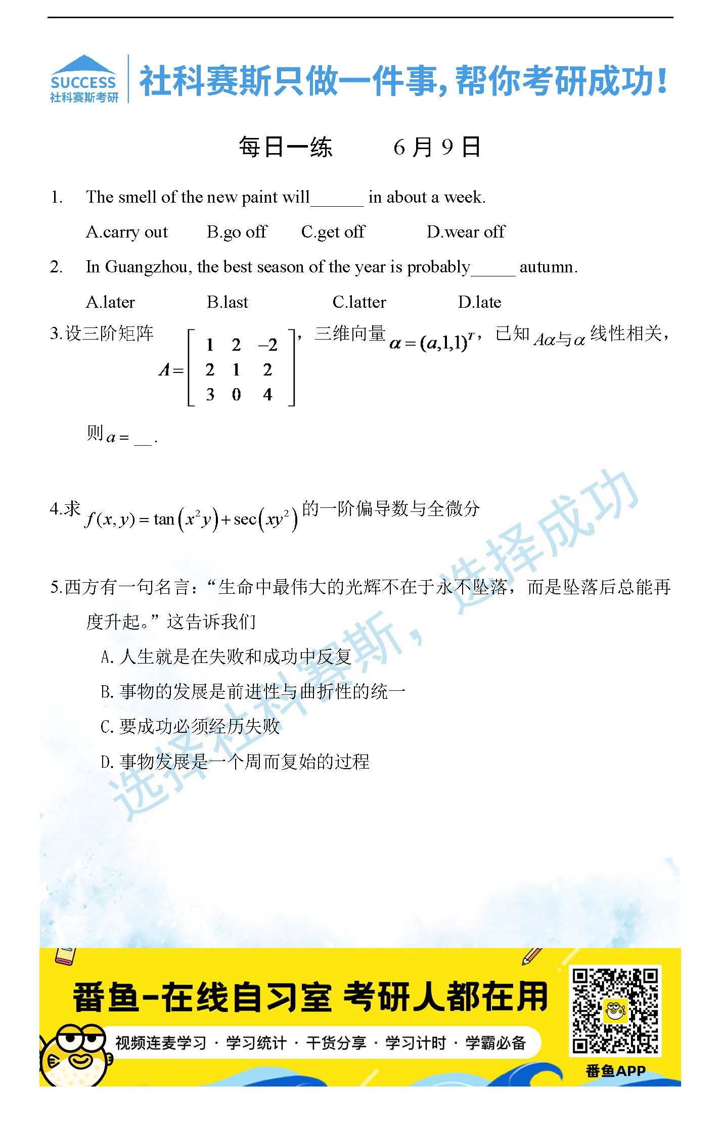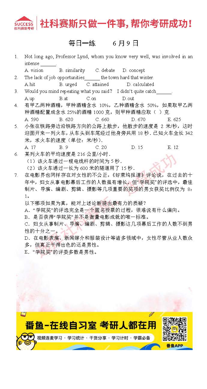 導(dǎo)讀:考研是一場(chǎng)持久戰(zhàn),保持良好的學(xué)習(xí)習(xí)慣,是能確保復(fù)習(xí)高效的關(guān)鍵。今天社科賽斯MBA備考網(wǎng)小編整理了“2022管理類聯(lián)考6月9日每日一練及答案”的內(nèi)容,希望能對(duì)廣大考生有所幫助。