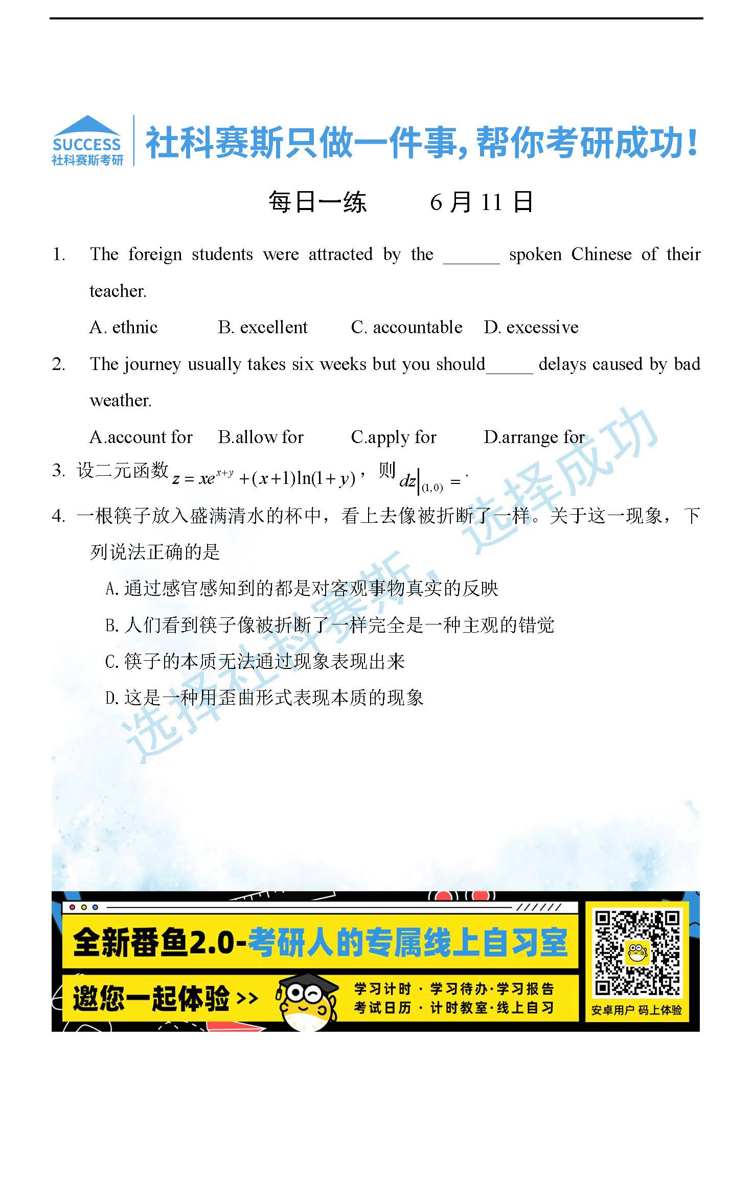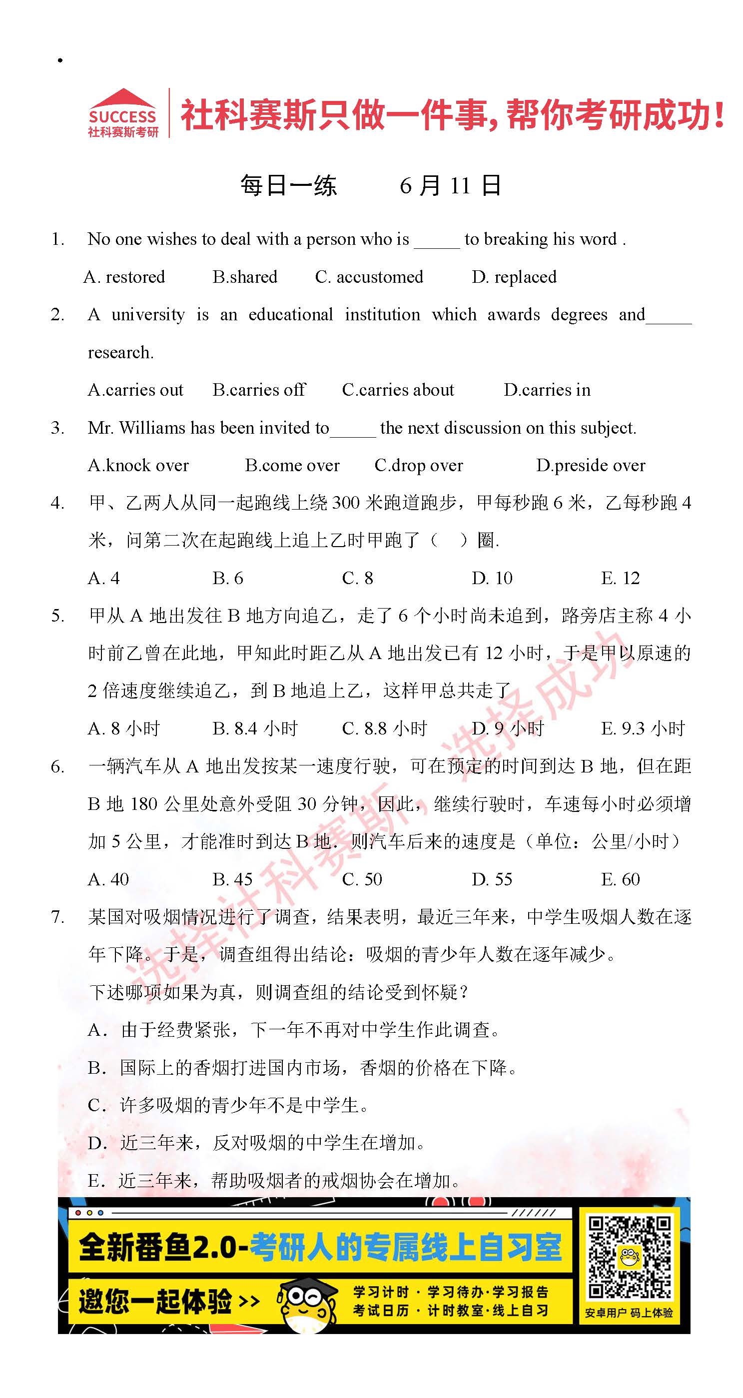 首頁> 管理類聯(lián)考每日一練 > 2022管理類聯(lián)考6月11日每日一練及答案