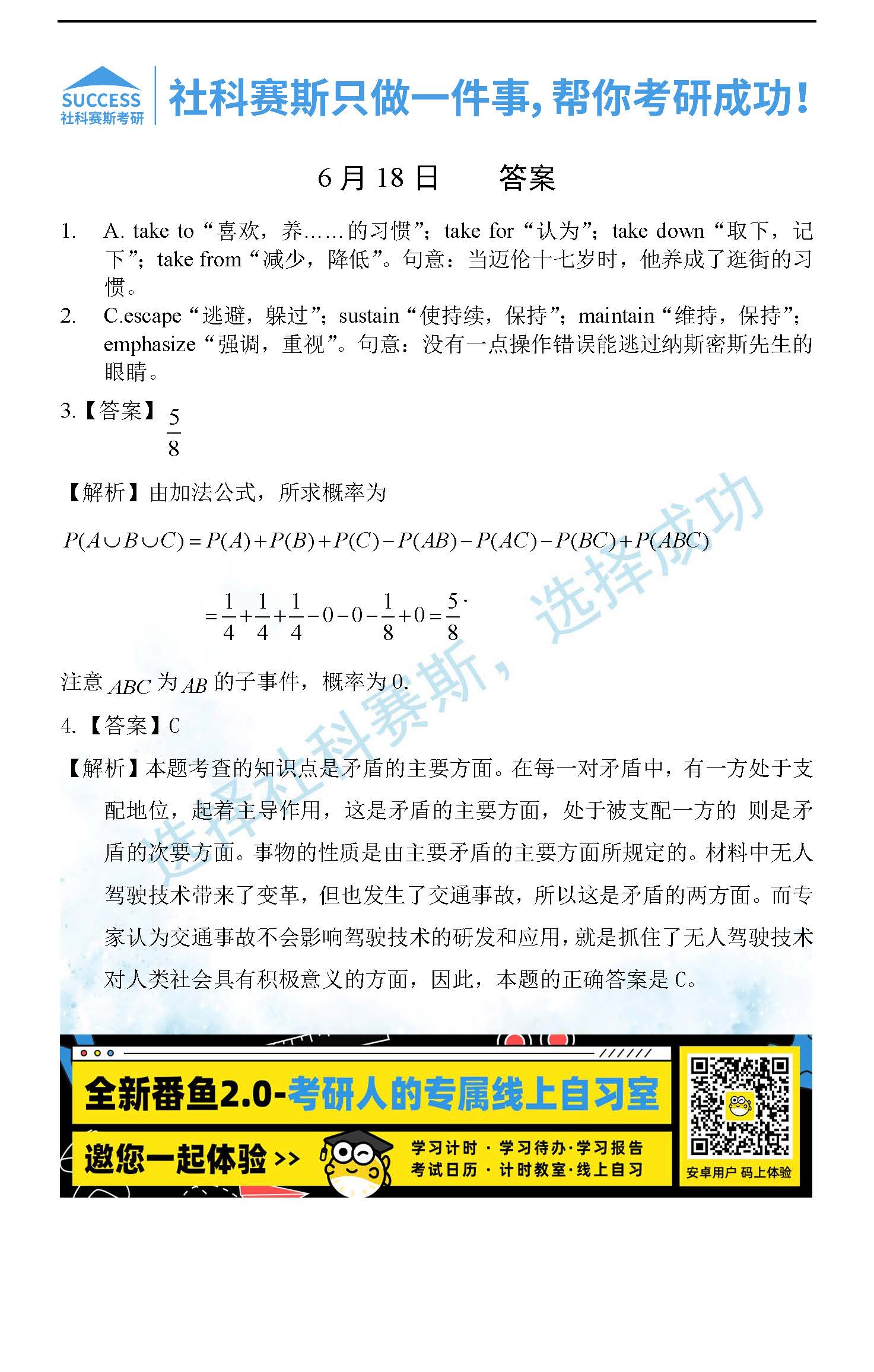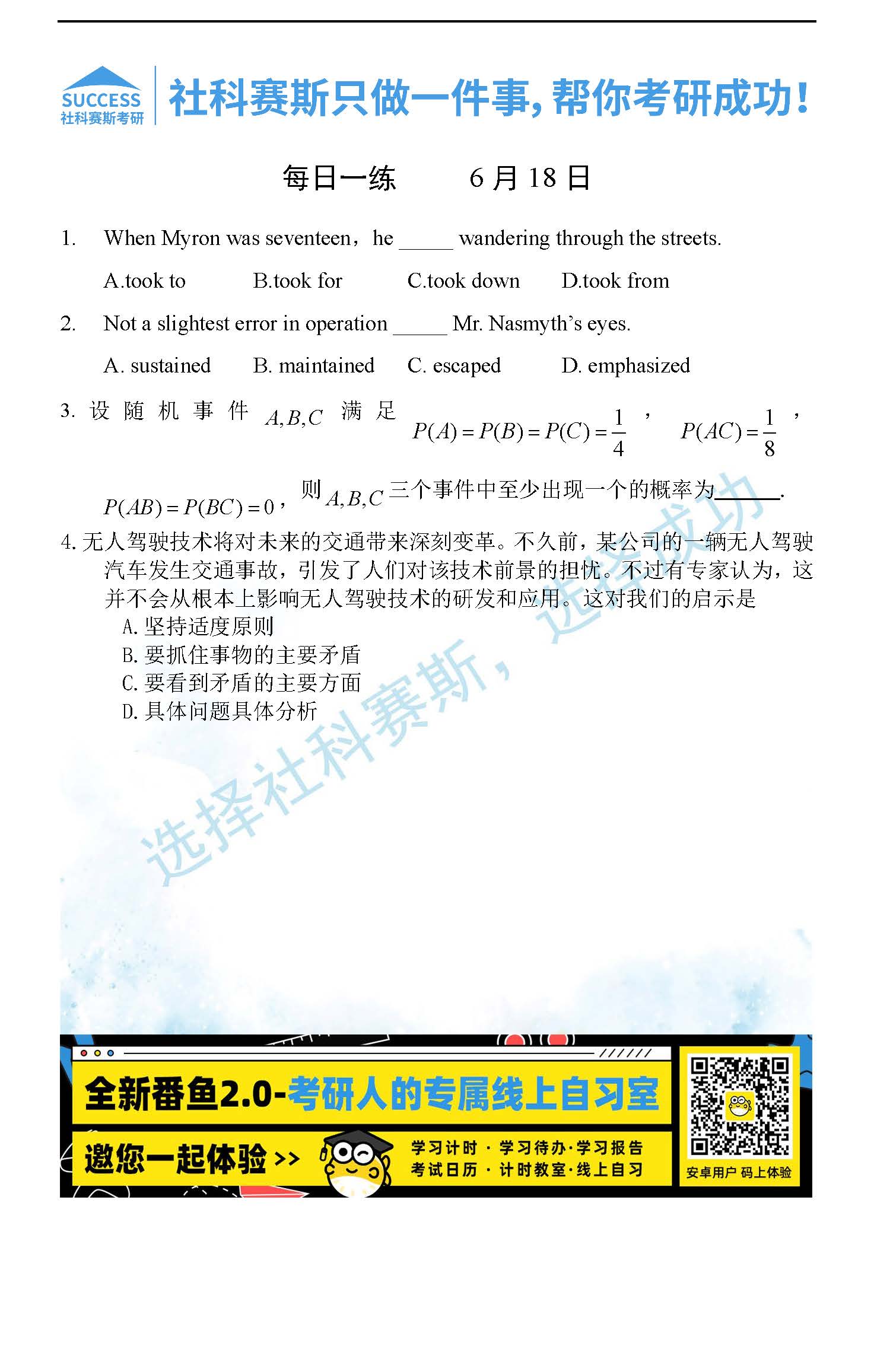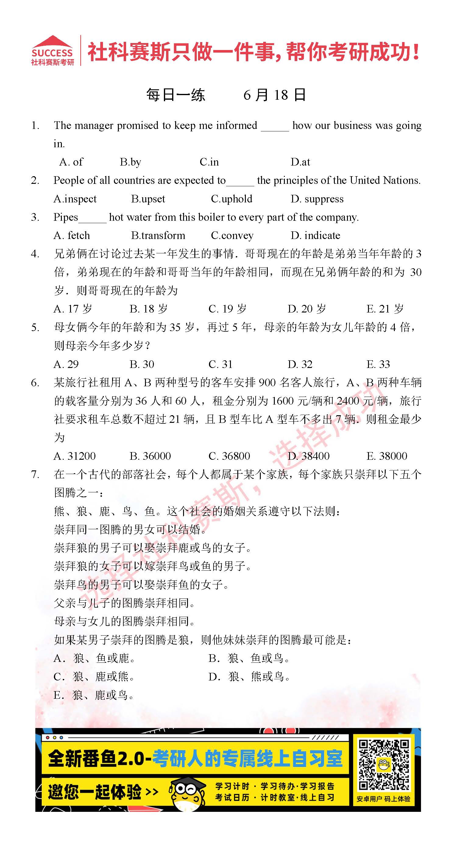 導(dǎo)讀:考研是一場(chǎng)持久戰(zhàn),保持良好的學(xué)習(xí)習(xí)慣,是能確保復(fù)習(xí)高效的關(guān)鍵。今天社科賽斯MBA備考網(wǎng)小編整理了“2022管理類聯(lián)考6月18日每日一練及答案”的內(nèi)容,希望能對(duì)廣大考生有所幫助。