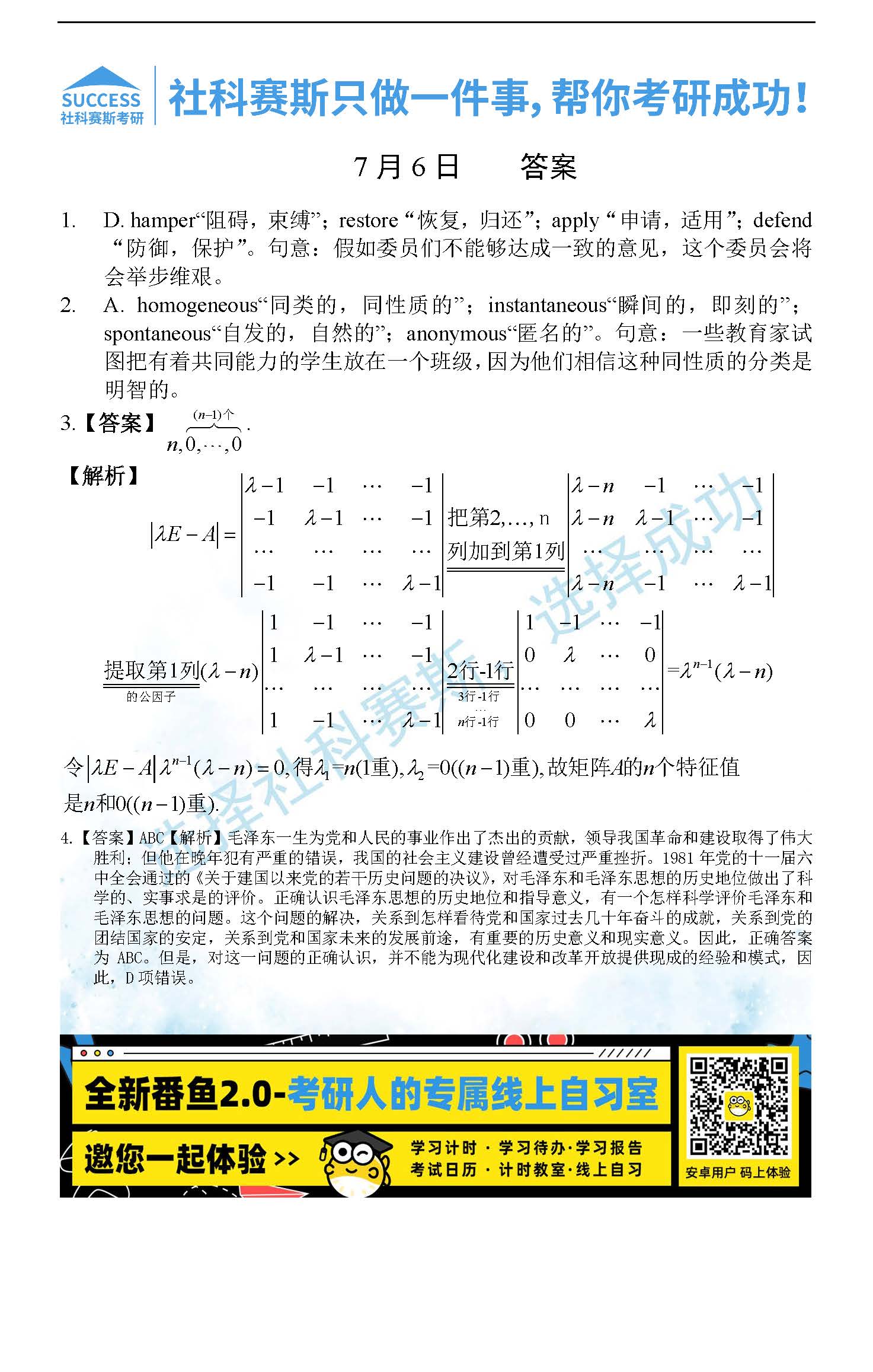 導(dǎo)讀:考研是一場(chǎng)持久戰(zhàn),保持良好的學(xué)習(xí)習(xí)慣,是能確保復(fù)習(xí)高效的關(guān)鍵。今天社科賽斯MBA備考網(wǎng)小編整理了“2022管理類聯(lián)考7月6日每日一練及答案”的內(nèi)容,希望能對(duì)廣大考生有所幫助。