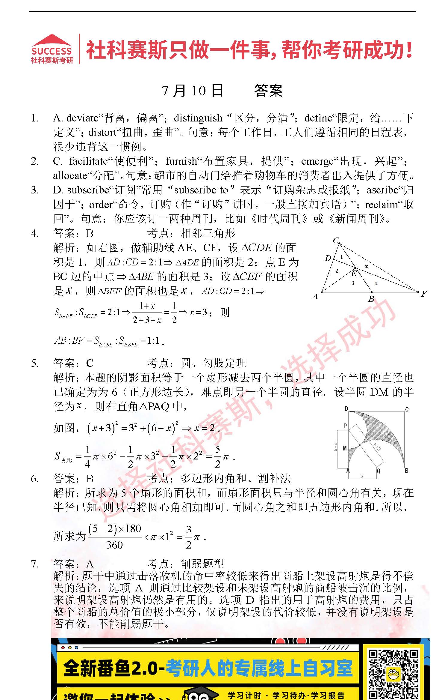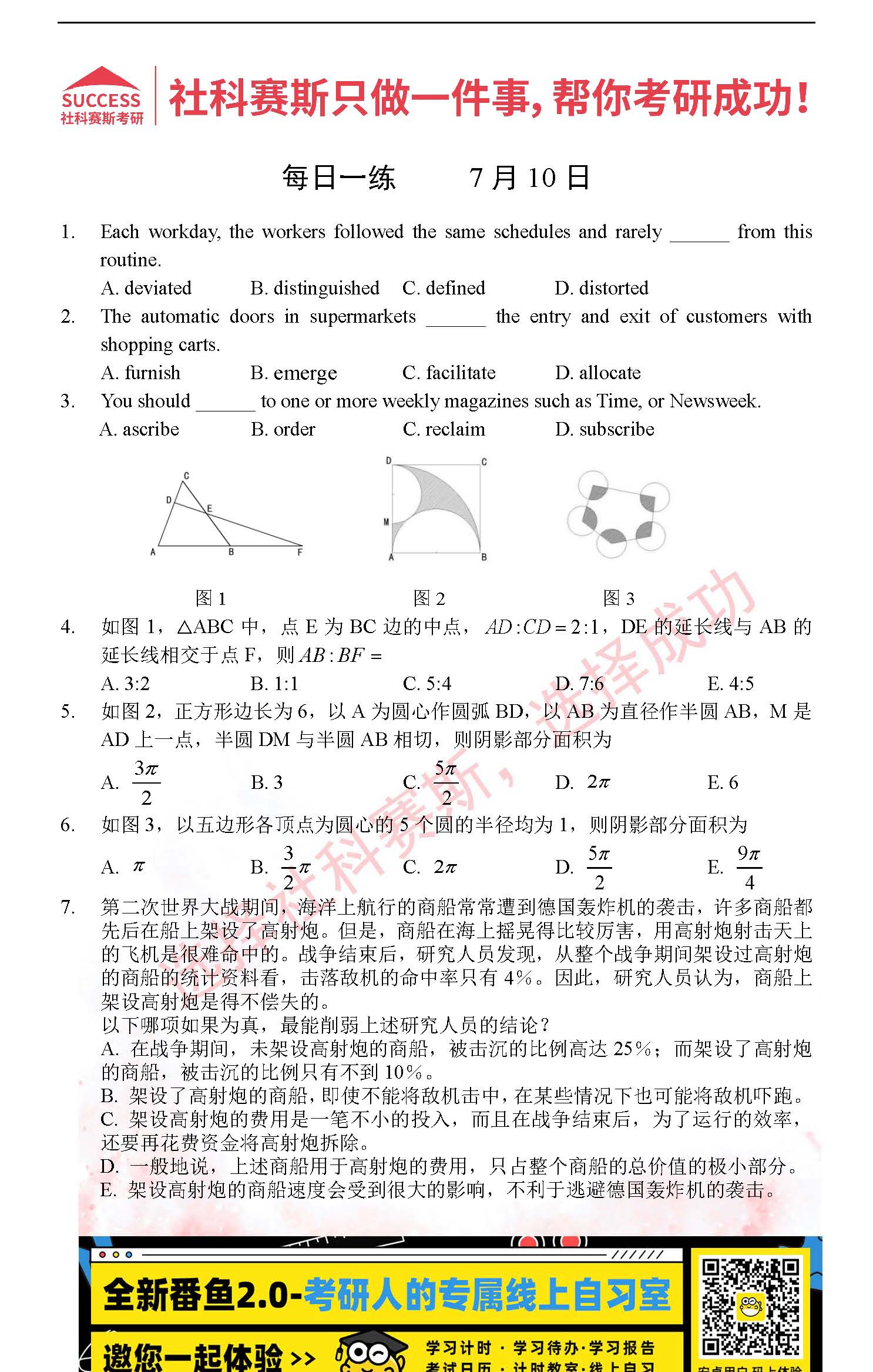 以上就是社科賽斯MBA備考網(wǎng)小編為大家整理“2022管理類聯(lián)考7月10日每日一練及答案”的全部內(nèi)容,希望各位考生堅(jiān)持利用起來,更多每日一練內(nèi)容請持續(xù)關(guān)注MBA備考網(wǎng)管理類聯(lián)考每日一練。