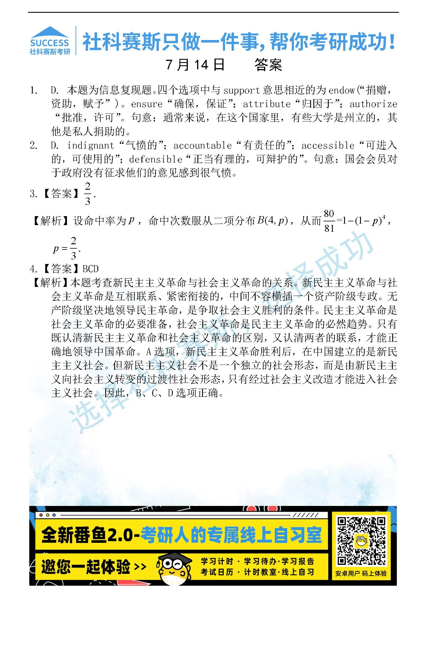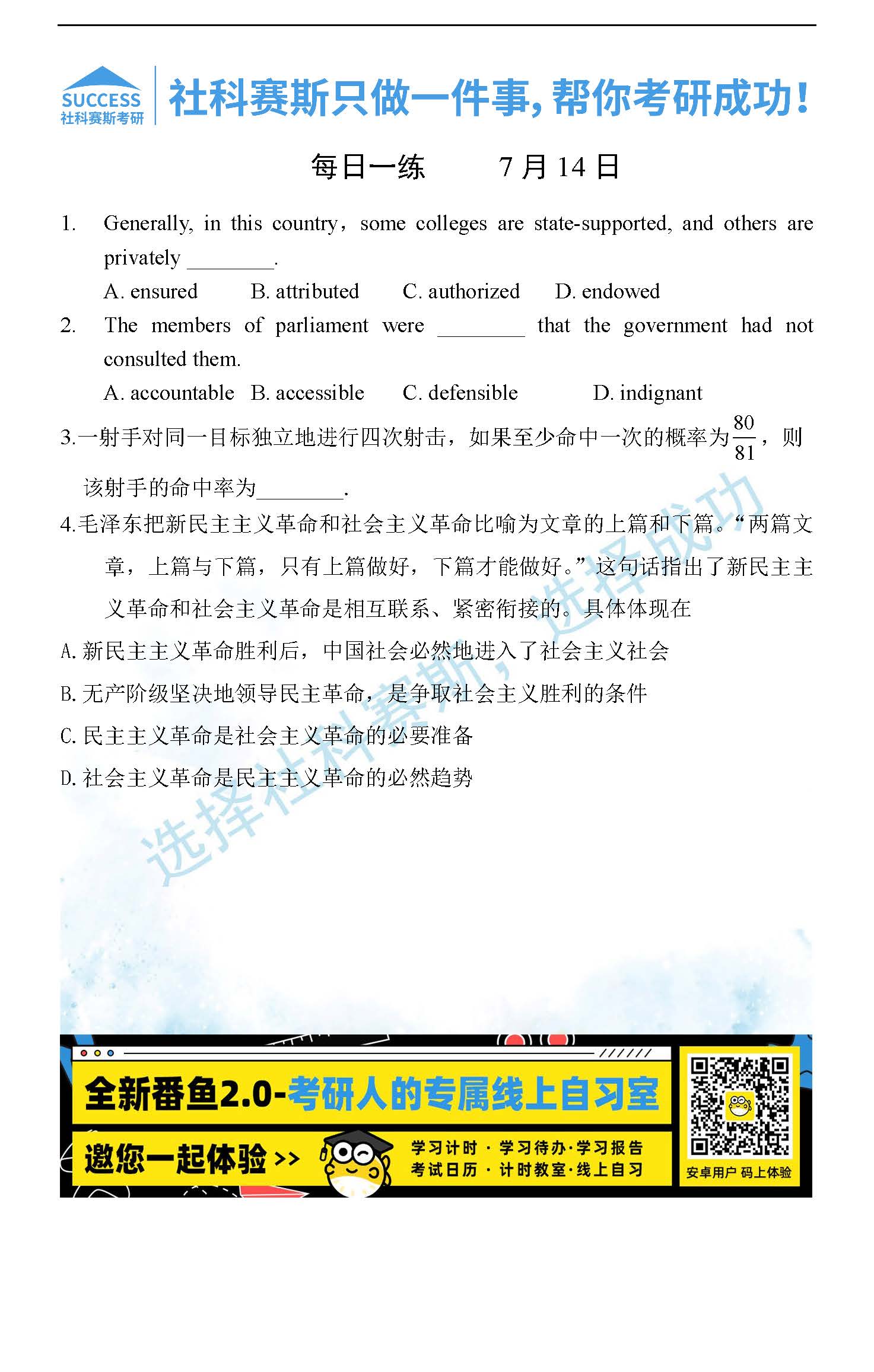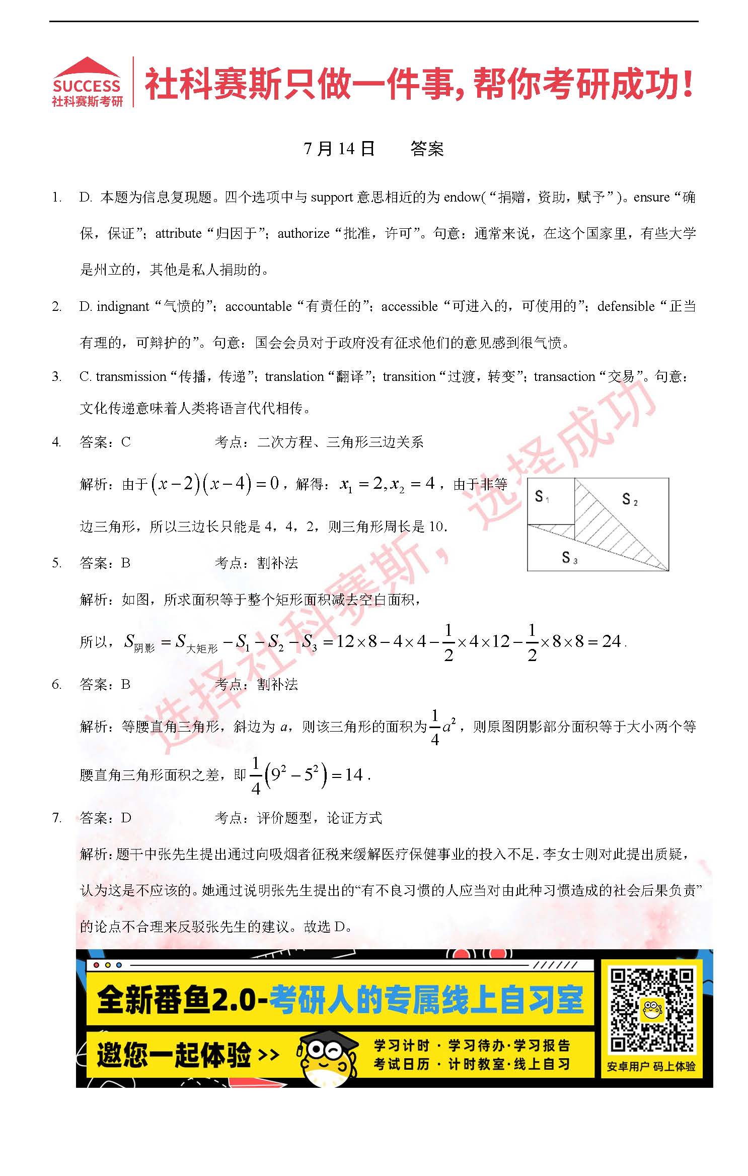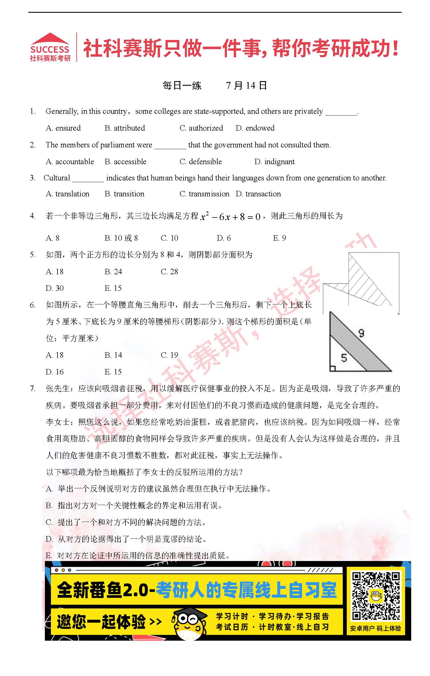 2022管理類聯(lián)考7月14日每日一練及答案”