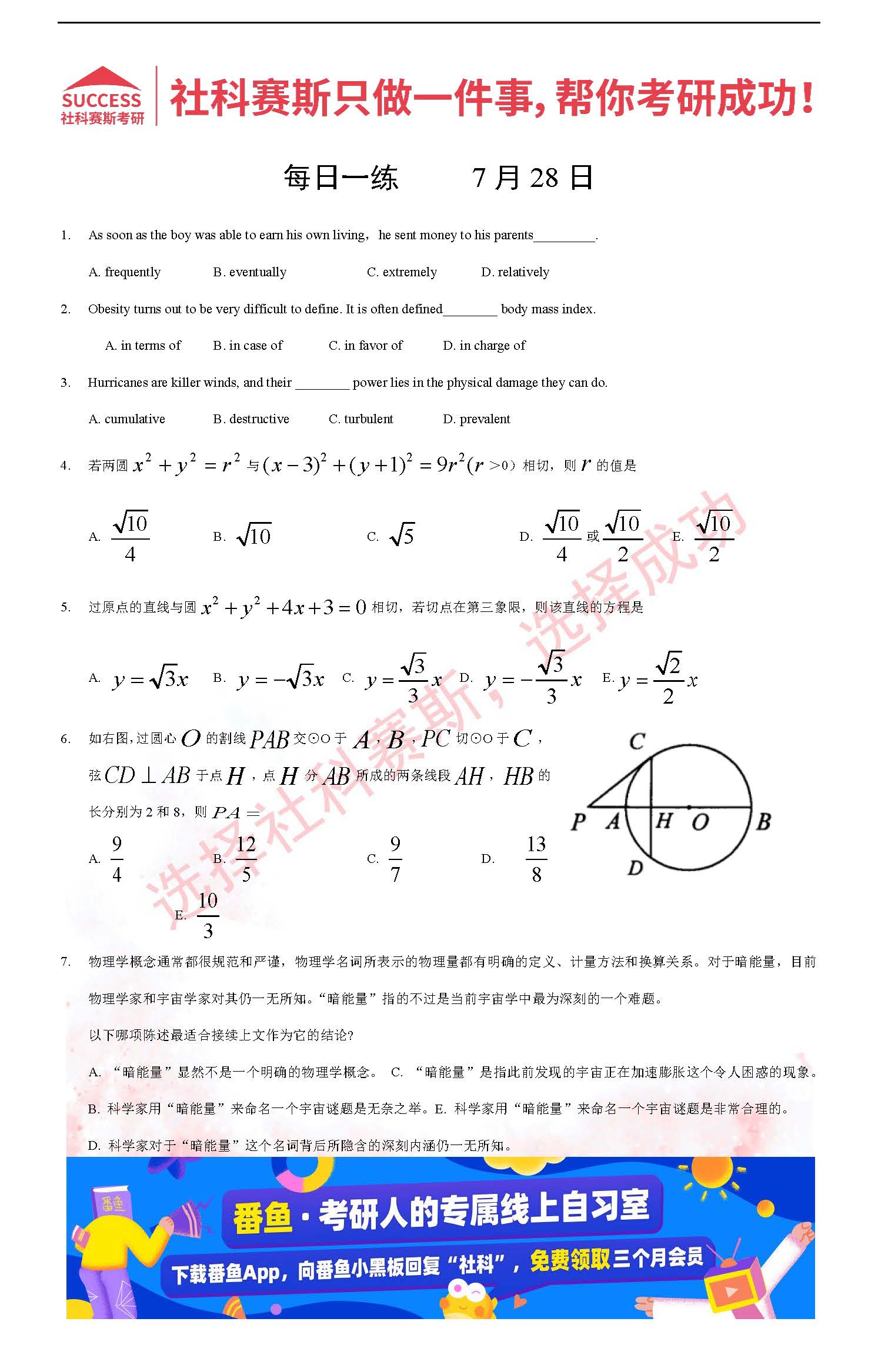 導讀:考研是一場持久戰(zhàn),保持良好的學習習慣,是能確保復習高效的關鍵。今天社科賽斯MBA備考網(wǎng)小編整理了“2022管理類聯(lián)考7月28日每日一練及答案”的內(nèi)容,希望能對廣大考生有所幫助。