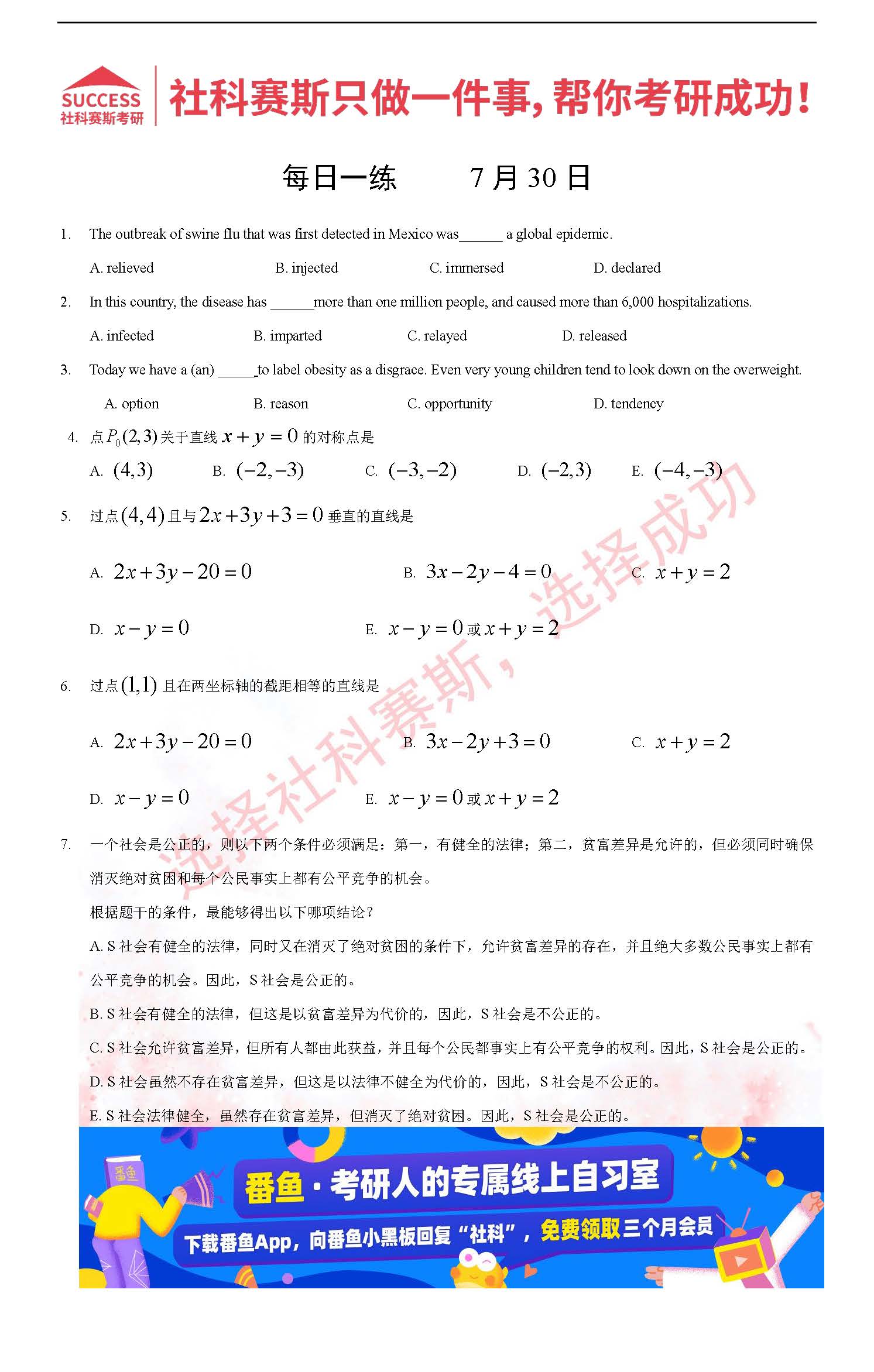 首頁> 管理類聯(lián)考每日一練 > 2022管理類聯(lián)考7月30日每日一練及答案