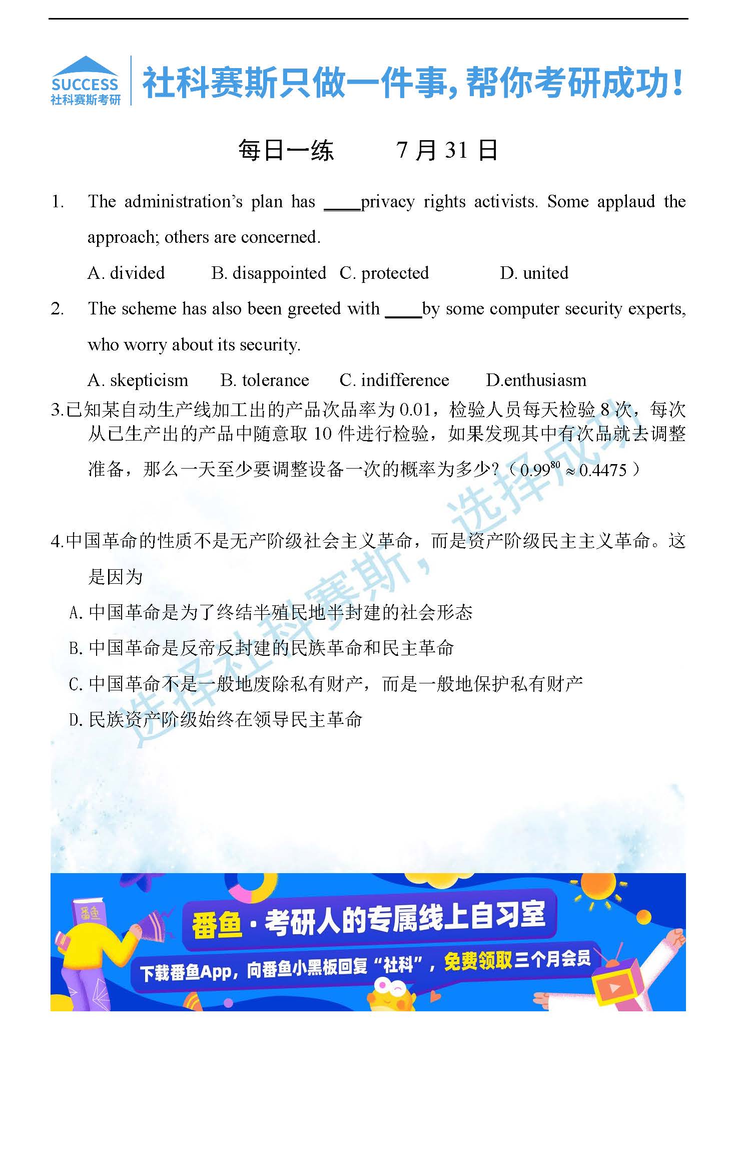 首頁> 管理類聯(lián)考每日一練 > 2022管理類聯(lián)考7月31日每日一練及答案