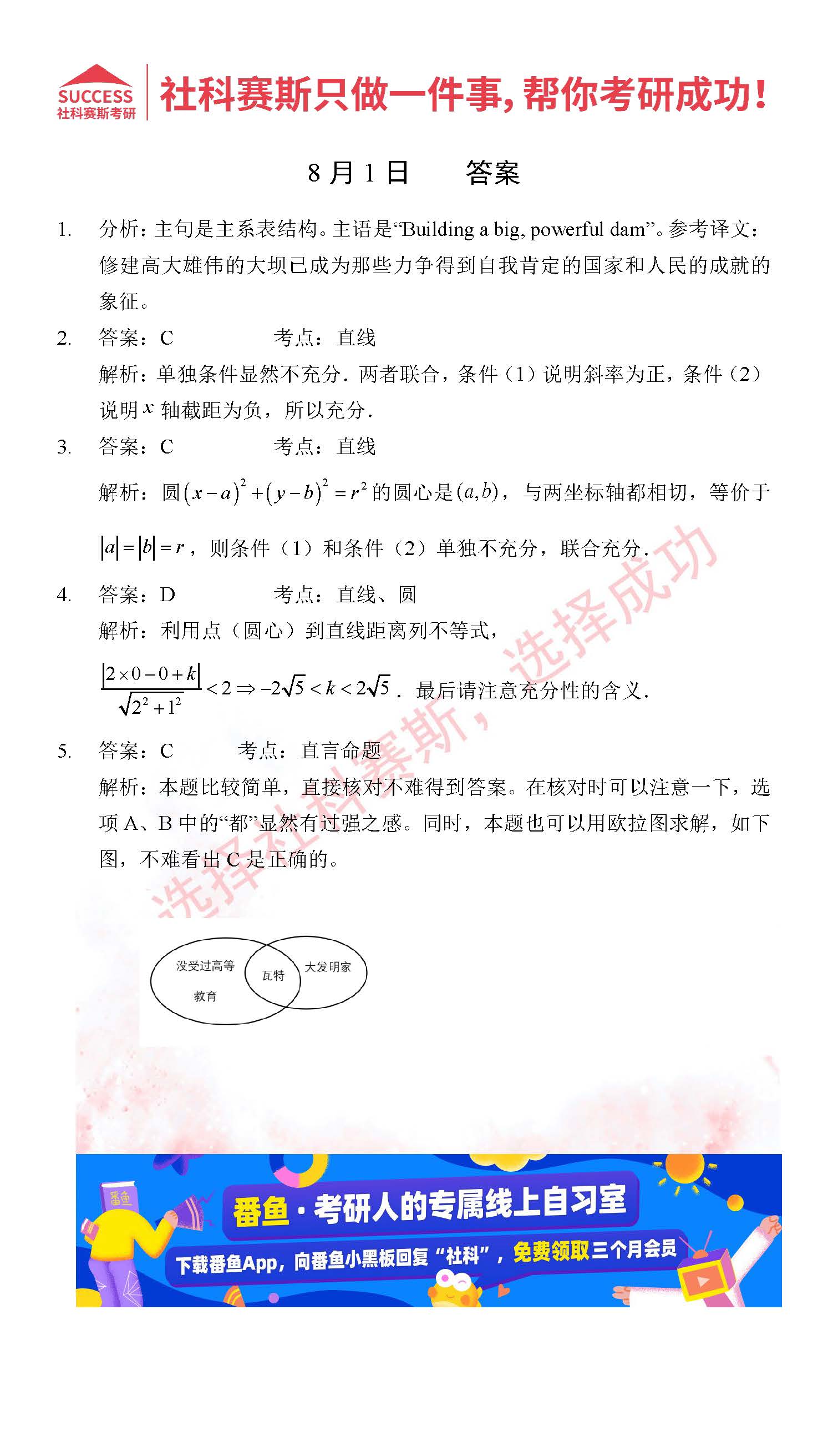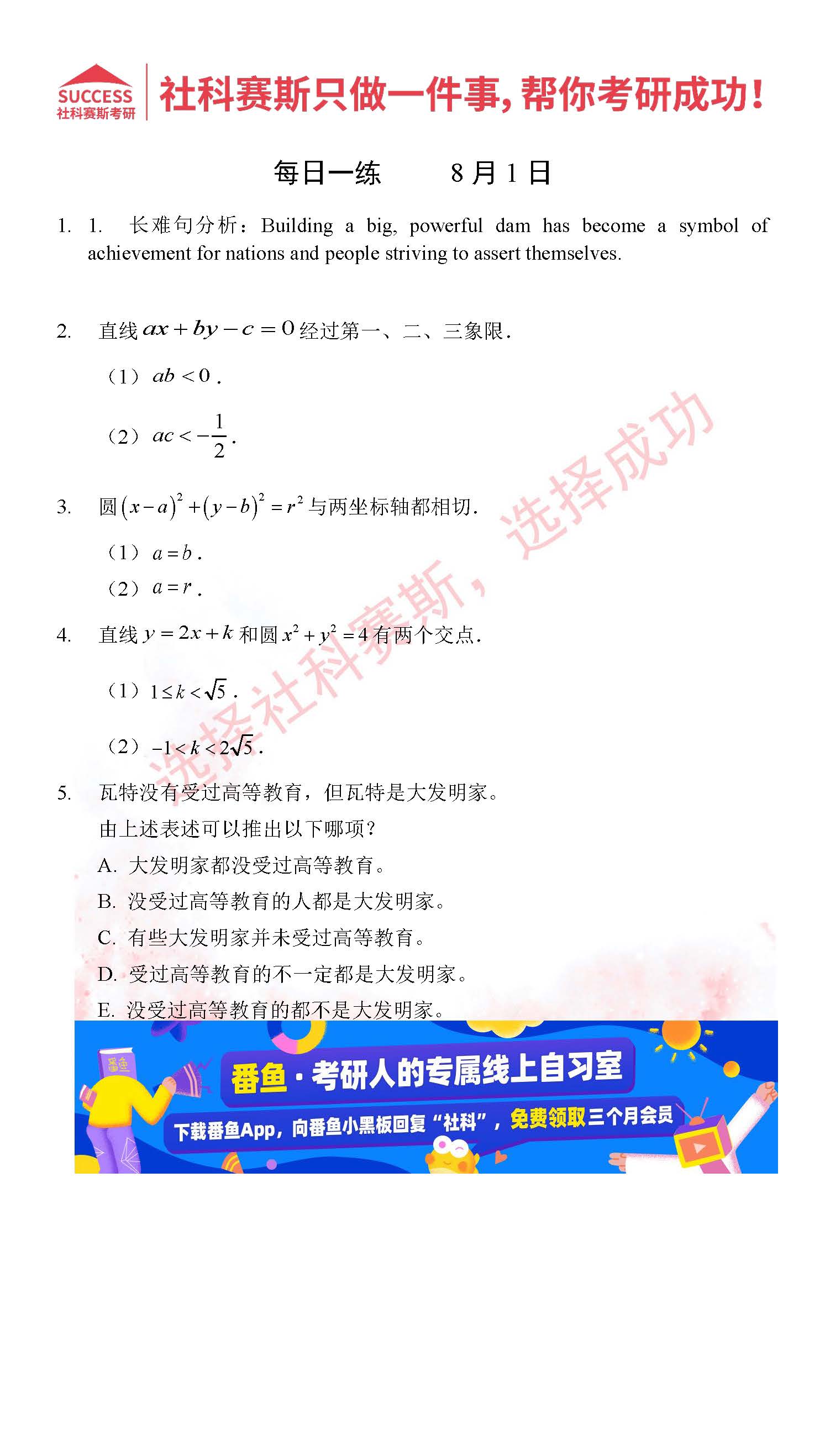 首頁> 管理類聯(lián)考每日一練 > 2022管理類聯(lián)考8月1日每日一練及答案