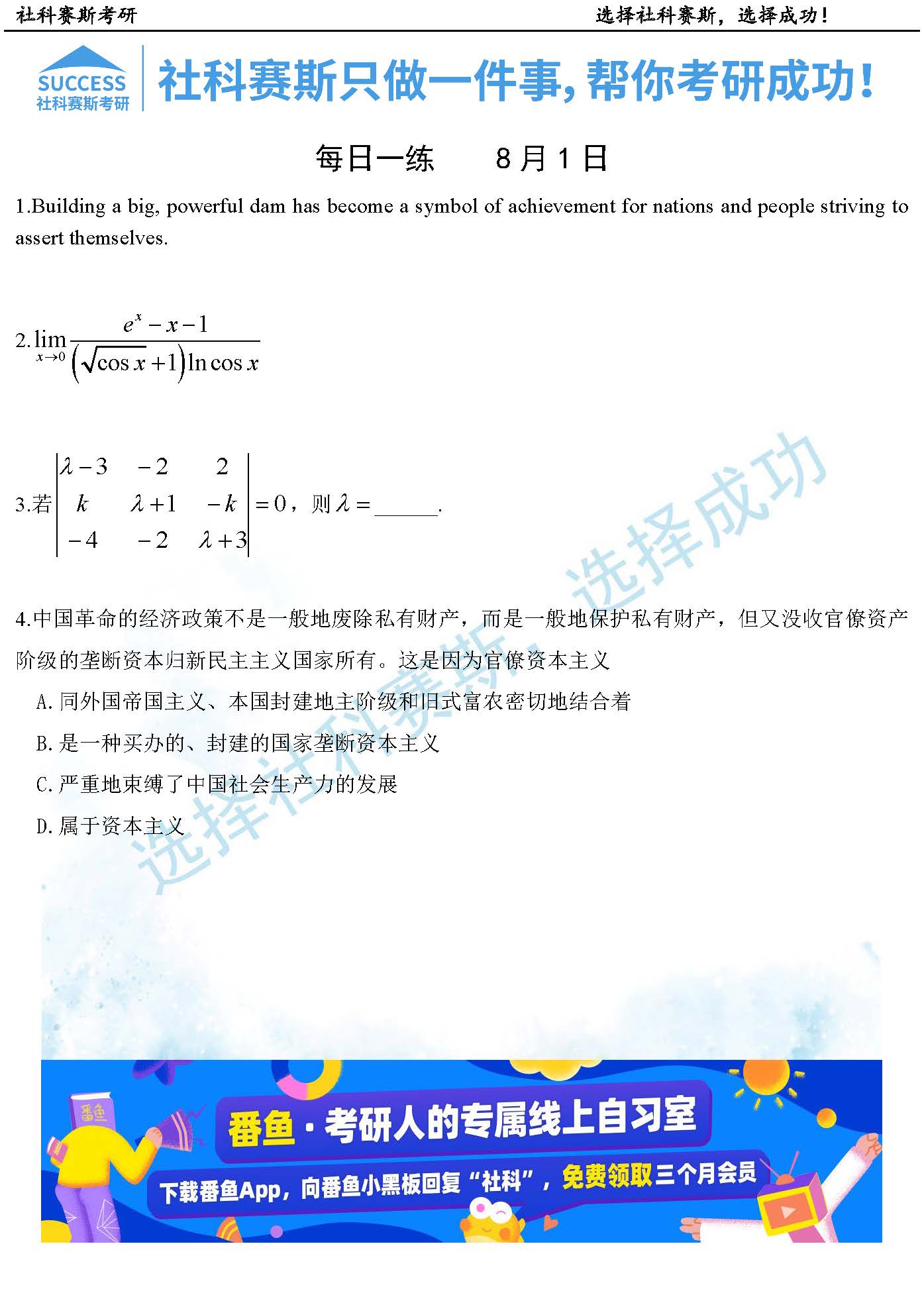 導讀:考研是一場持久戰(zhàn),保持良好的學習習慣,是能確保復習高效的關鍵。今天社科賽斯MBA備考網(wǎng)小編整理了“2022管理類聯(lián)考8月1日每日一練及答案”的內(nèi)容,希望能對廣大考生有所幫助。