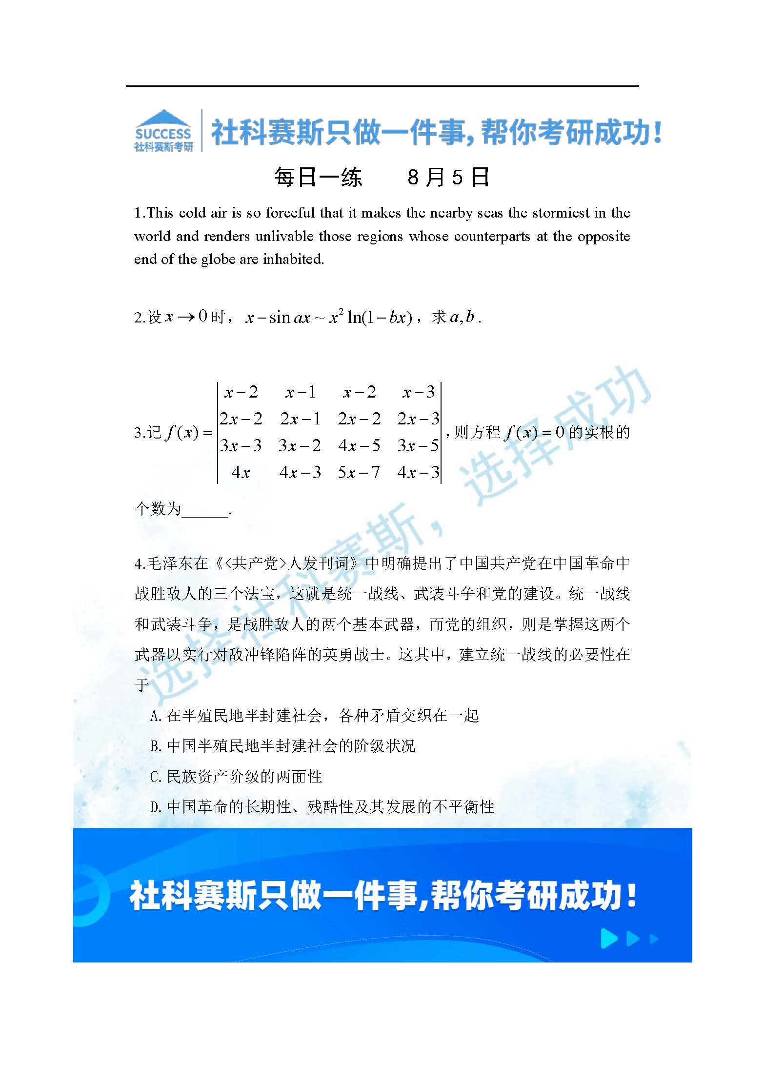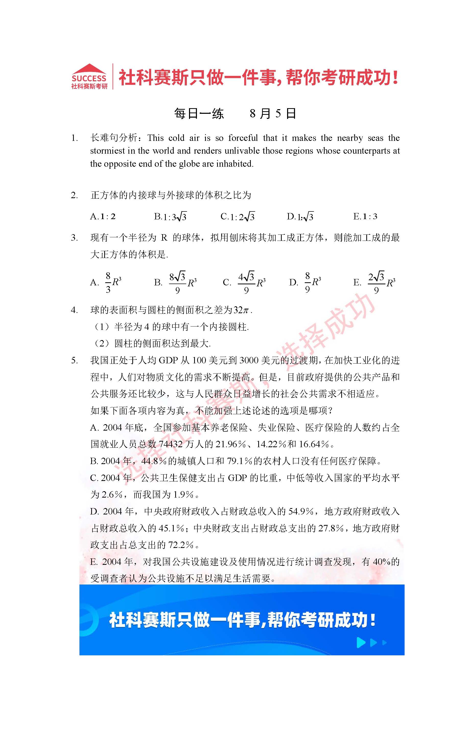 導(dǎo)讀:考研是一場(chǎng)持久戰(zhàn),保持良好的學(xué)習(xí)習(xí)慣,是能確保復(fù)習(xí)高效的關(guān)鍵。今天社科賽斯MBA備考網(wǎng)小編整理了“2022管理類(lèi)聯(lián)考8月5日每日一練及答案”的內(nèi)容,希望能對(duì)廣大考生有所幫助。