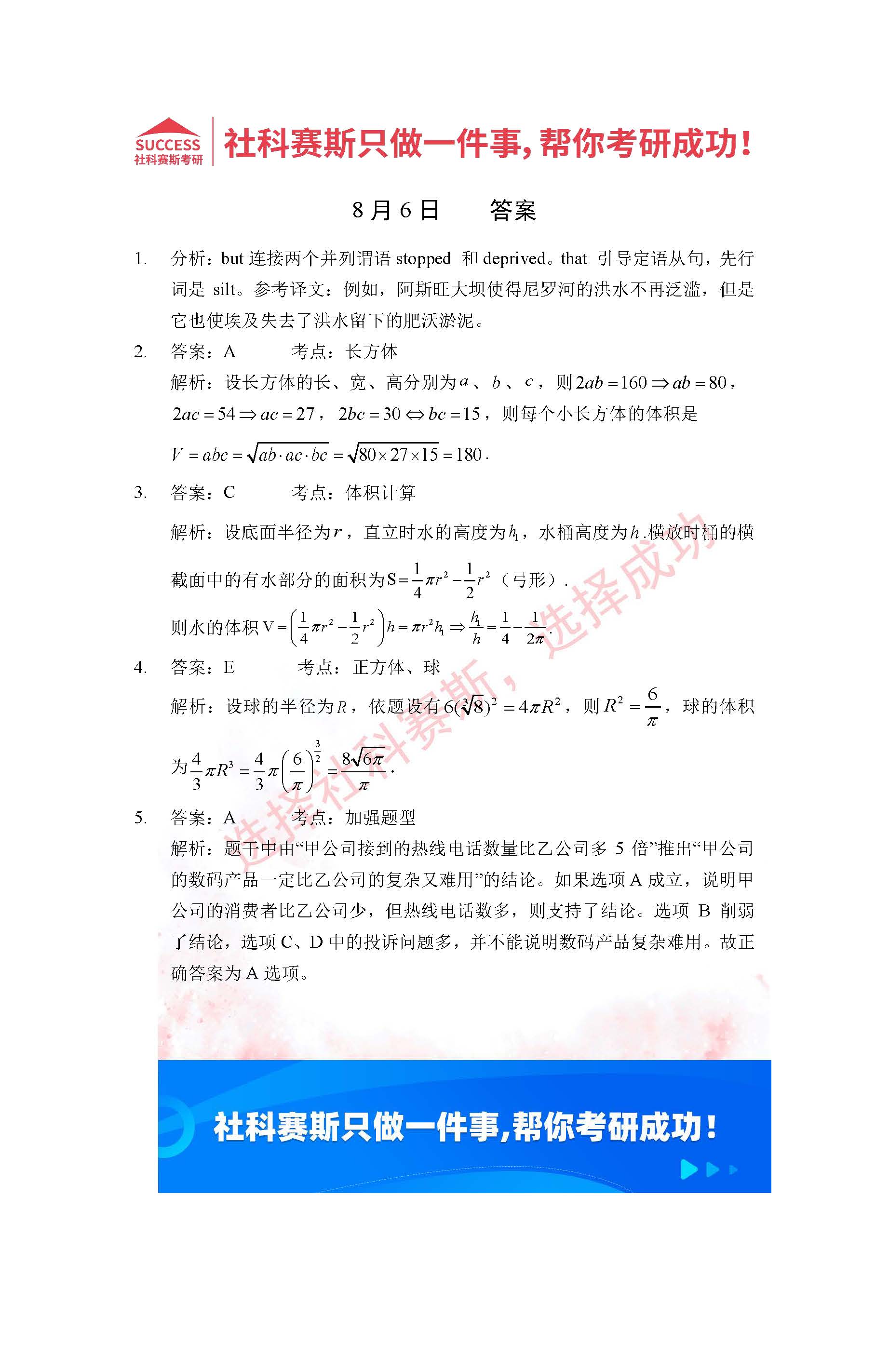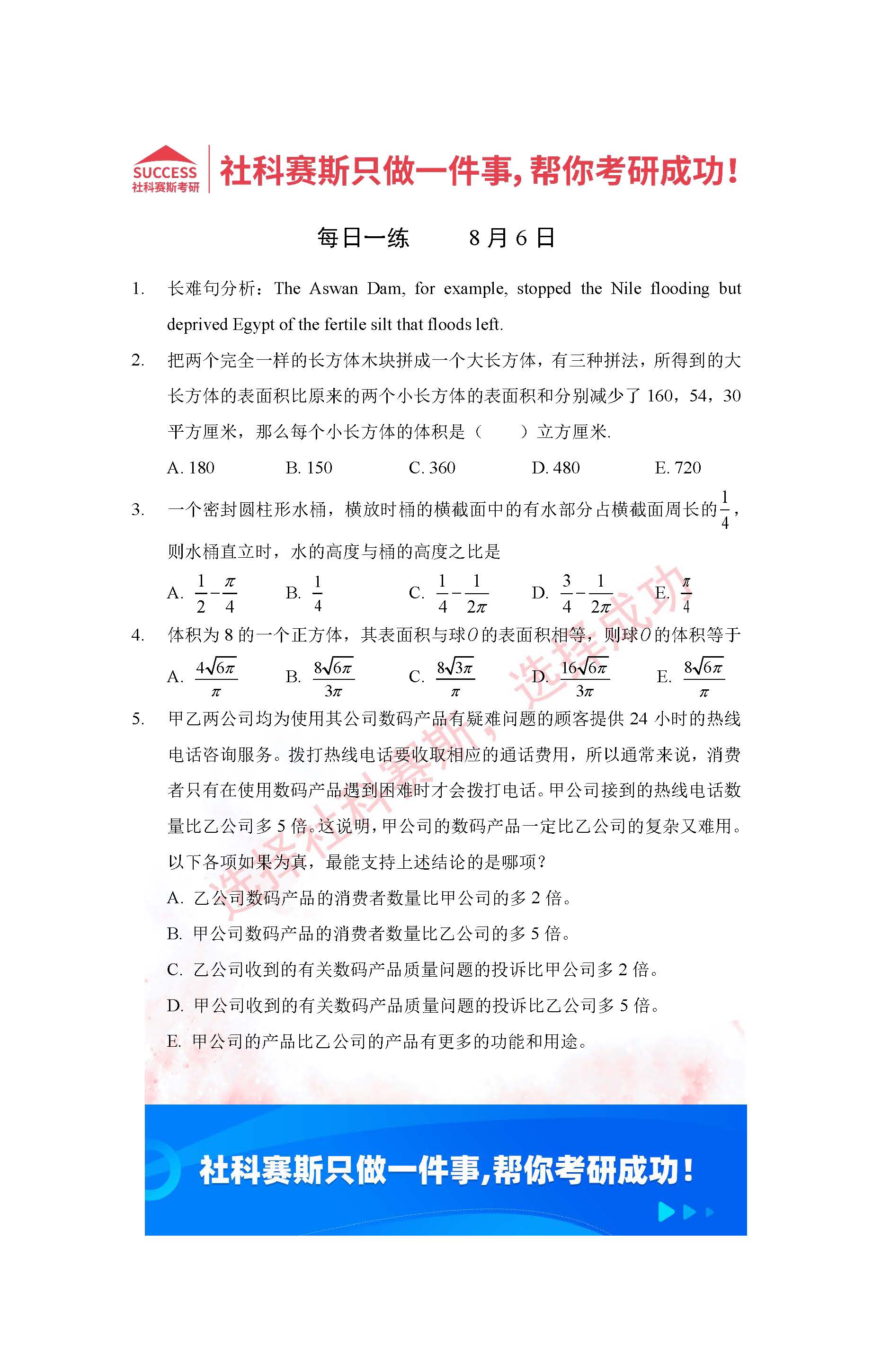 的全部內(nèi)容,希望各位考生堅持利用起來,更多每日一練內(nèi)容請持續(xù)關(guān)注MBA備考網(wǎng)管理類聯(lián)考每日一練。