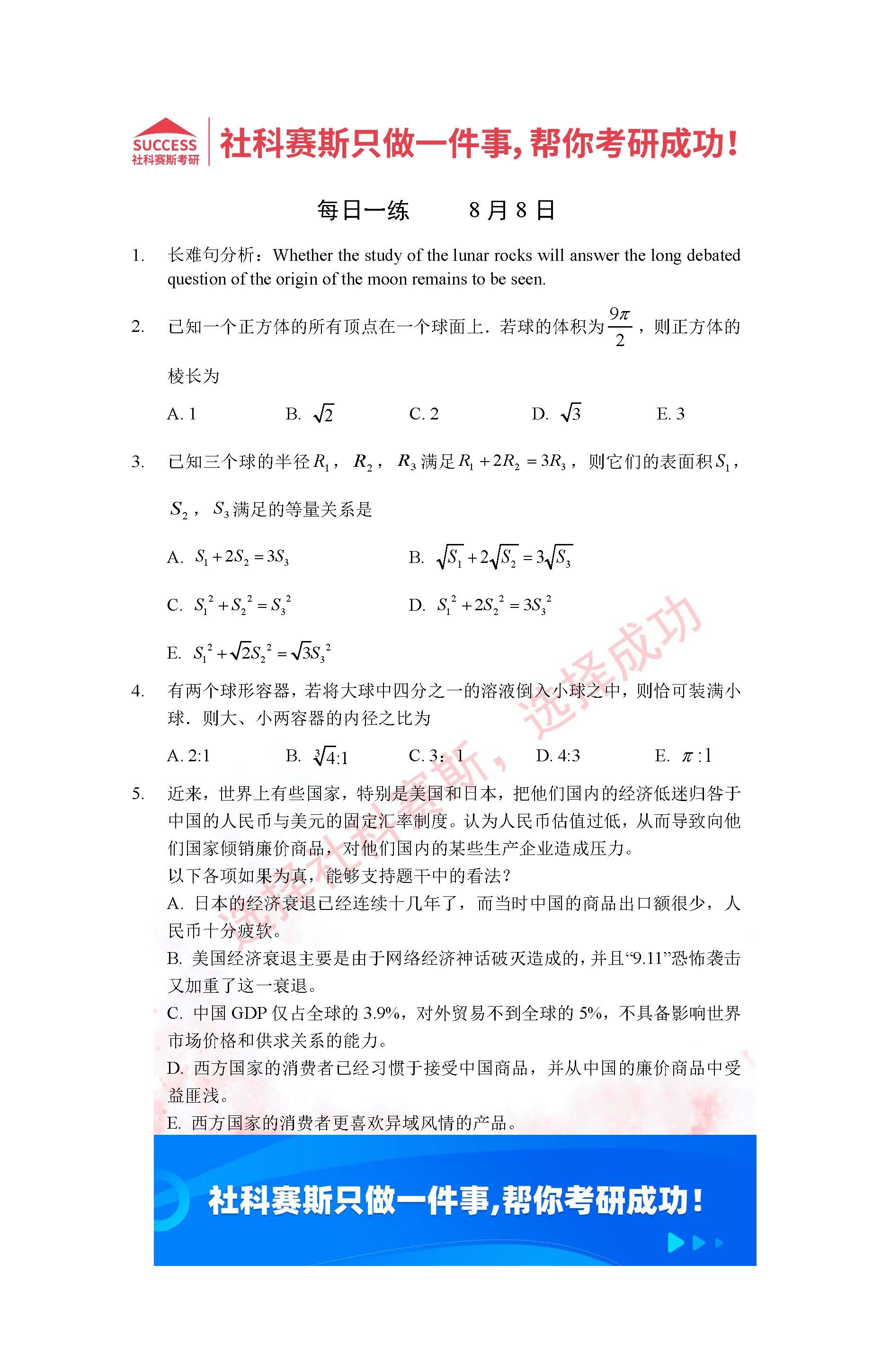 導讀:考研是一場持久戰(zhàn),保持良好的學習習慣,是能確保復(fù)習高效的關(guān)鍵。今天社科賽斯MBA備考網(wǎng)小編整理了“2022管理類聯(lián)考8月8日每日一練及答案”的內(nèi)容,希望能對廣大考生有所幫助。