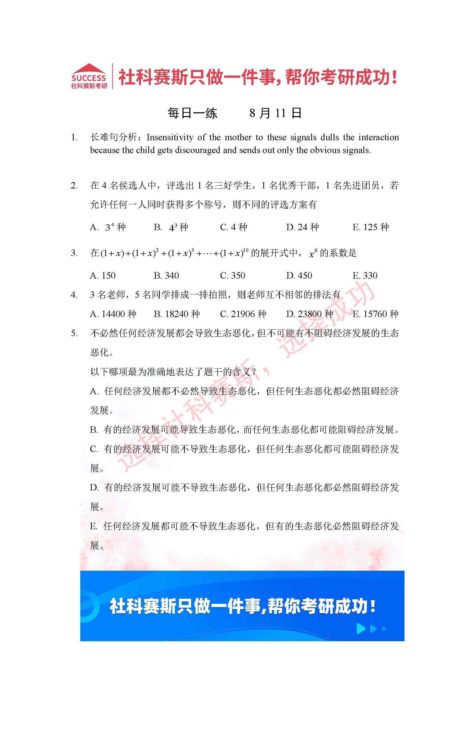 導(dǎo)讀:考研是一場持久戰(zhàn),保持良好的學(xué)習(xí)習(xí)慣,是能確保復(fù)習(xí)高效的關(guān)鍵。今天社科賽斯MBA備考網(wǎng)小編整理了“2022管理類聯(lián)考8月11日每日一練及答案”的內(nèi)容,希望能對廣大考生有所幫助。