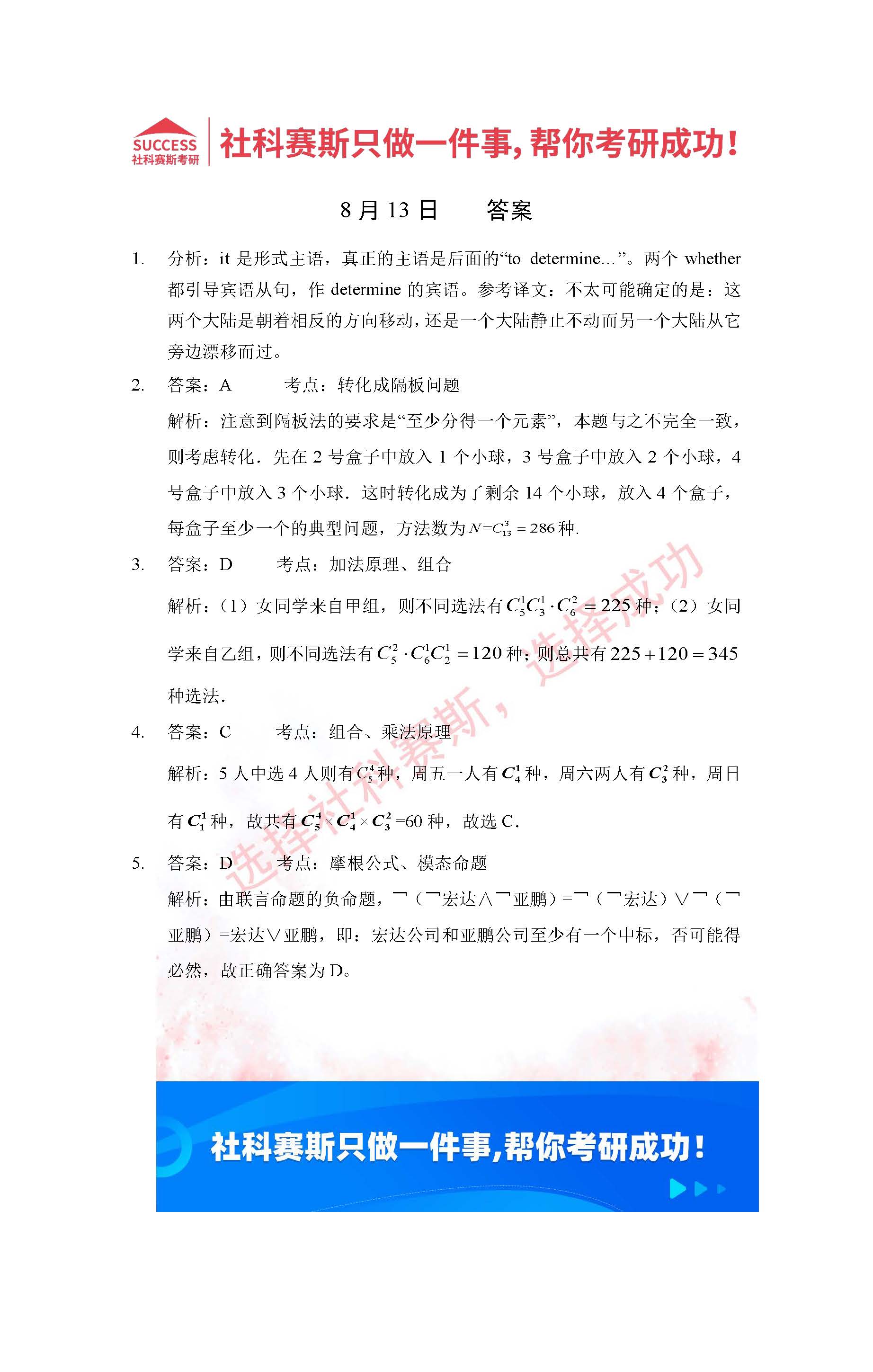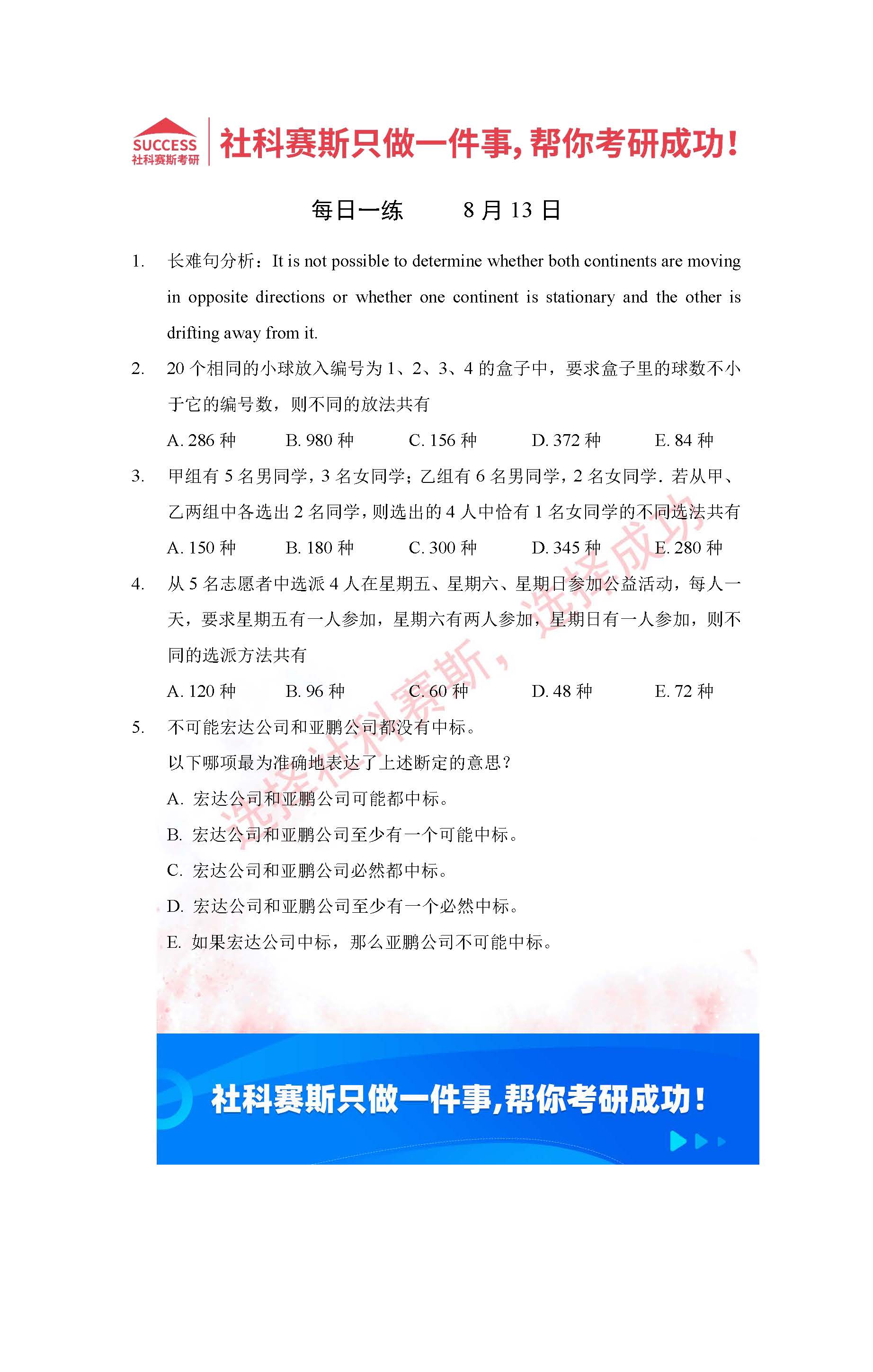 導(dǎo)讀:考研是一場(chǎng)持久戰(zhàn),保持良好的學(xué)習(xí)習(xí)慣,是能確保復(fù)習(xí)高效的關(guān)鍵。今天社科賽斯MBA備考網(wǎng)小編整理了“2022管理類(lèi)聯(lián)考8月13日每日一練及答案”的內(nèi)容,希望能對(duì)廣大考生有所幫助。